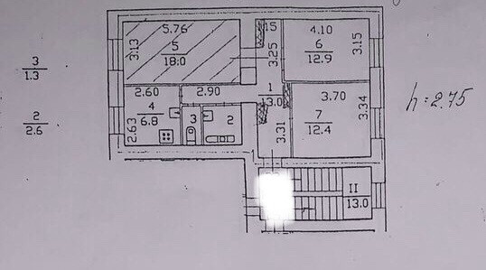 Высота потолков 2.75 м