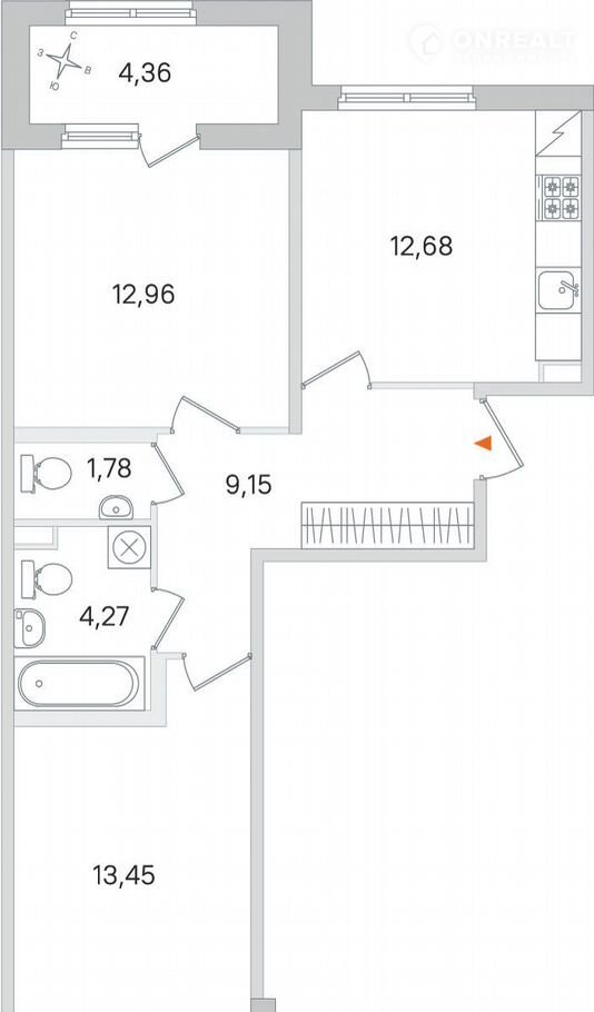 Общая площадь 56.5 м2