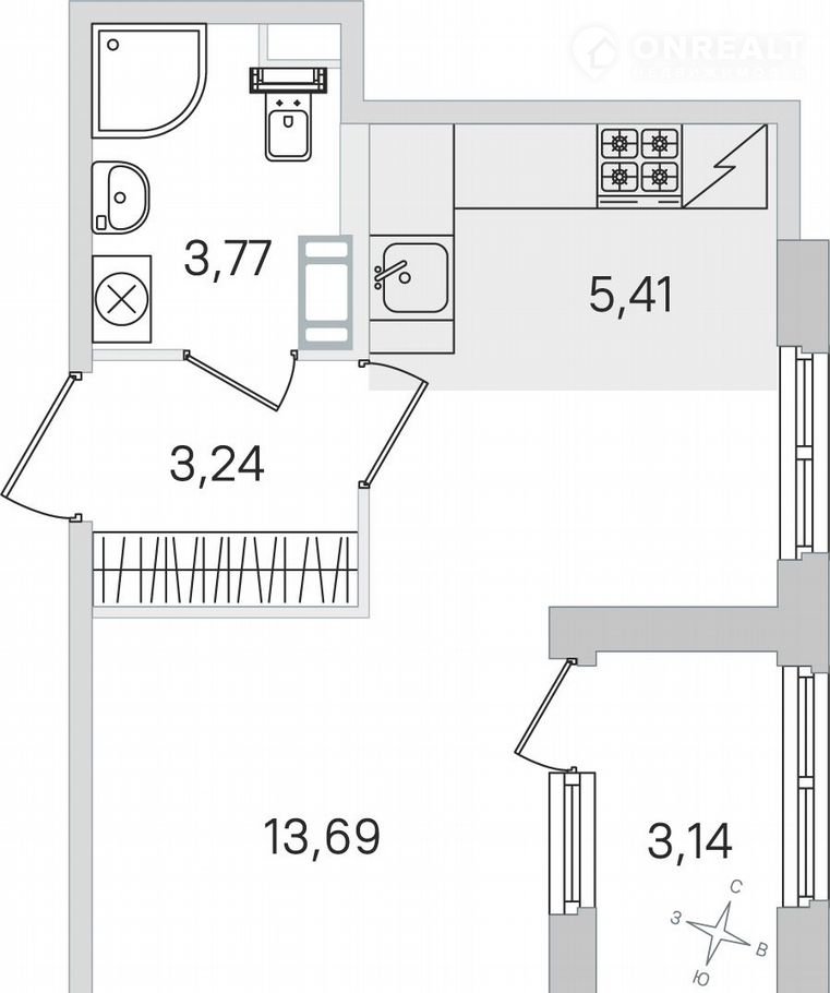 Общая площадь 27.7 м2