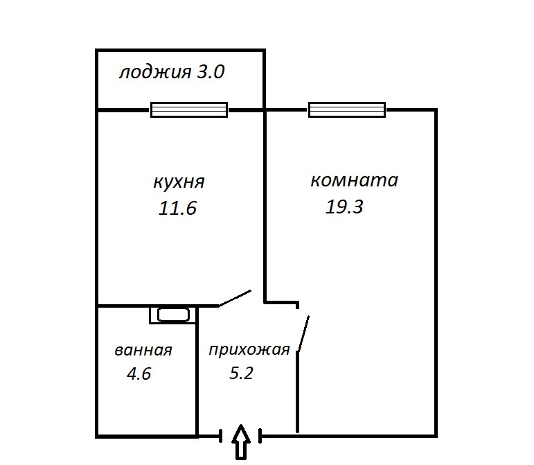 Жилая площадь 19.3 м2
