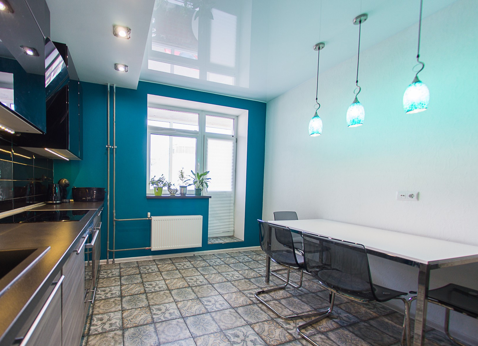 Пол - ламинат+керамогранит.
