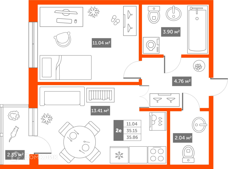 Общая площадь 35.86 м2