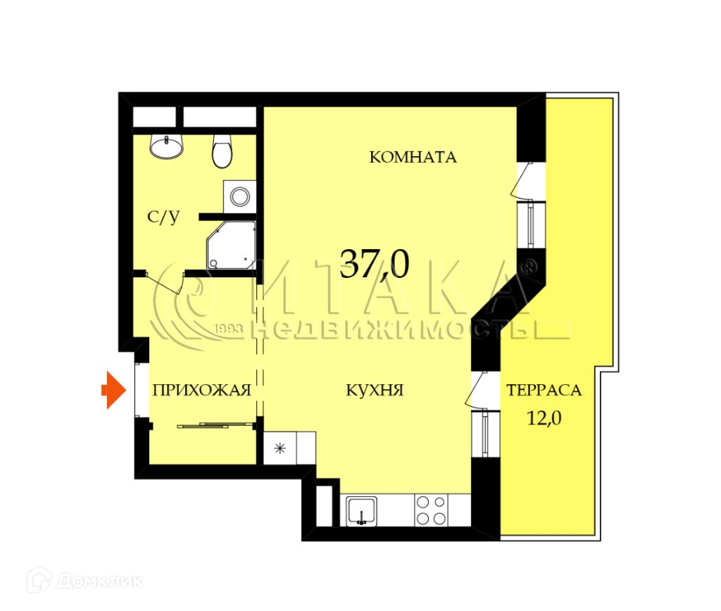 Общая площадь 37 м2