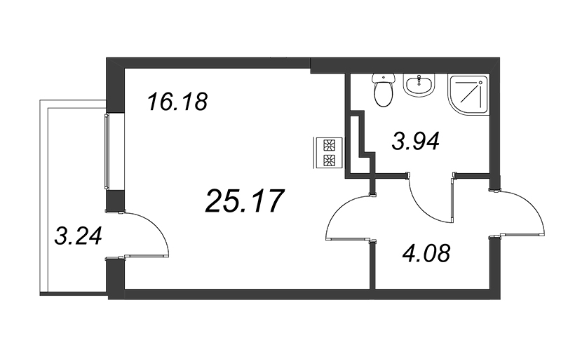 Общая площадь 25.17 м2