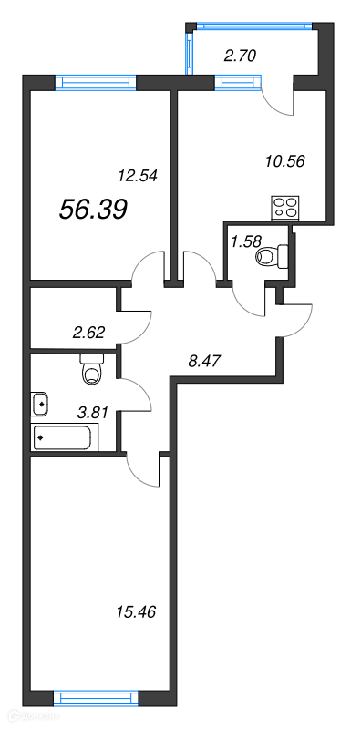 Общая площадь 56.39 м2