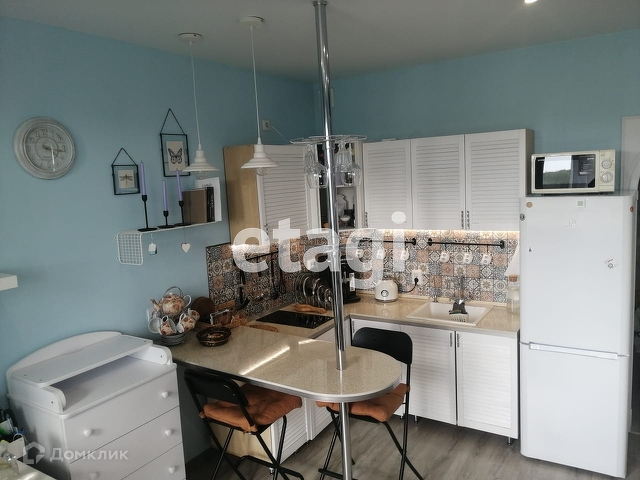 Квартира очень светлая и тёплая, с большой застеклённой лоджией, с которой открывается вид на зелёную поляну. Покупателю остаётся почти вся мебель и техника (индукционная варочная панель, холодильник, микроволновая печь, стиральная машина). В кухонный гарнитур встроена подсветка с сенсорным выключателем, все выключатели в квартире также сенсорные. Потолок в комнате - натяжной, в прихожей и ванной - подвесные, пол оформлен ламинатом и керамогранитом (в санузле). Для максимального комфорта в квартире предусмотрена принудительная вентиляция и регулируемое отопление, а также клапаны микропроветривания.