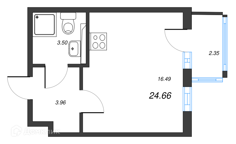 Общая площадь 24.66 м2