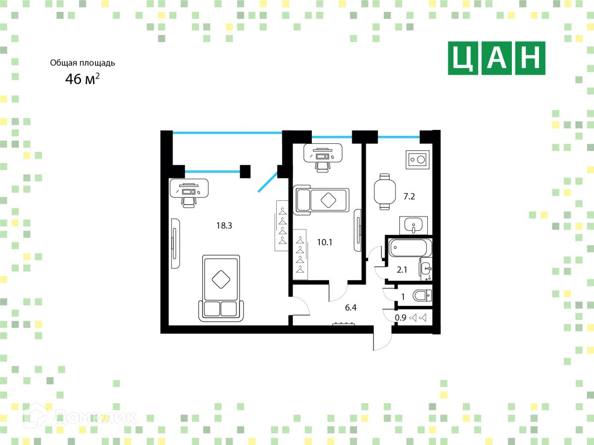Общая площадь 46 м2