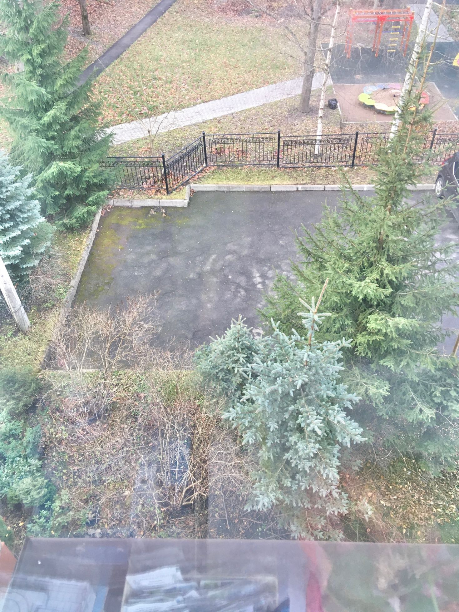 - Красивый вид из окон на красивые соседние дома, в уютный зелёный двор.