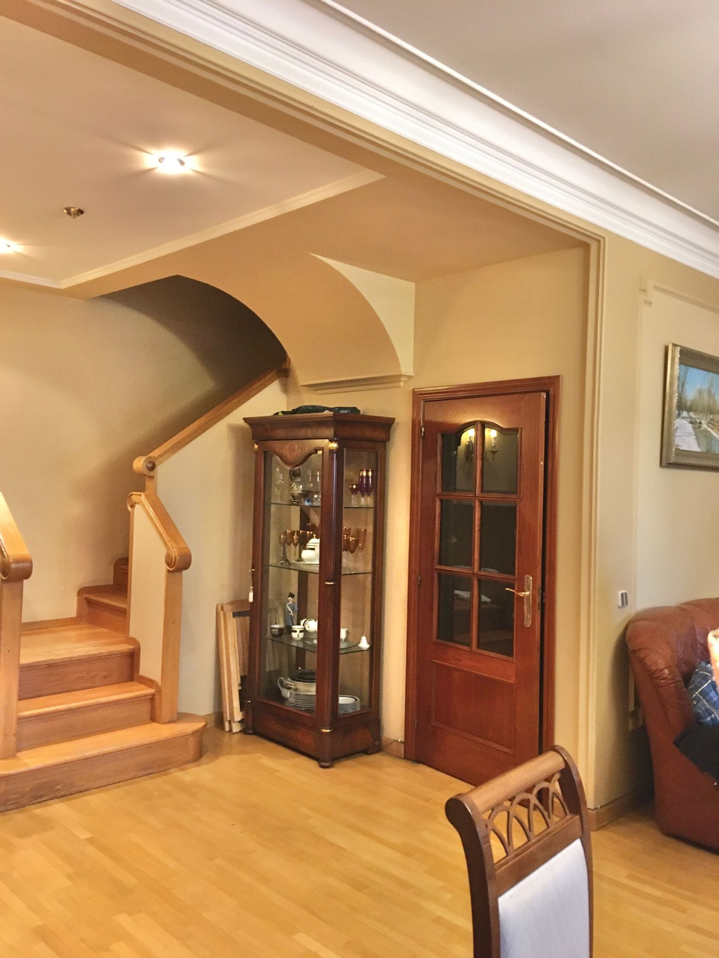 - Испанские двери. На 1 уровне дубовый на втором буковый паркет.