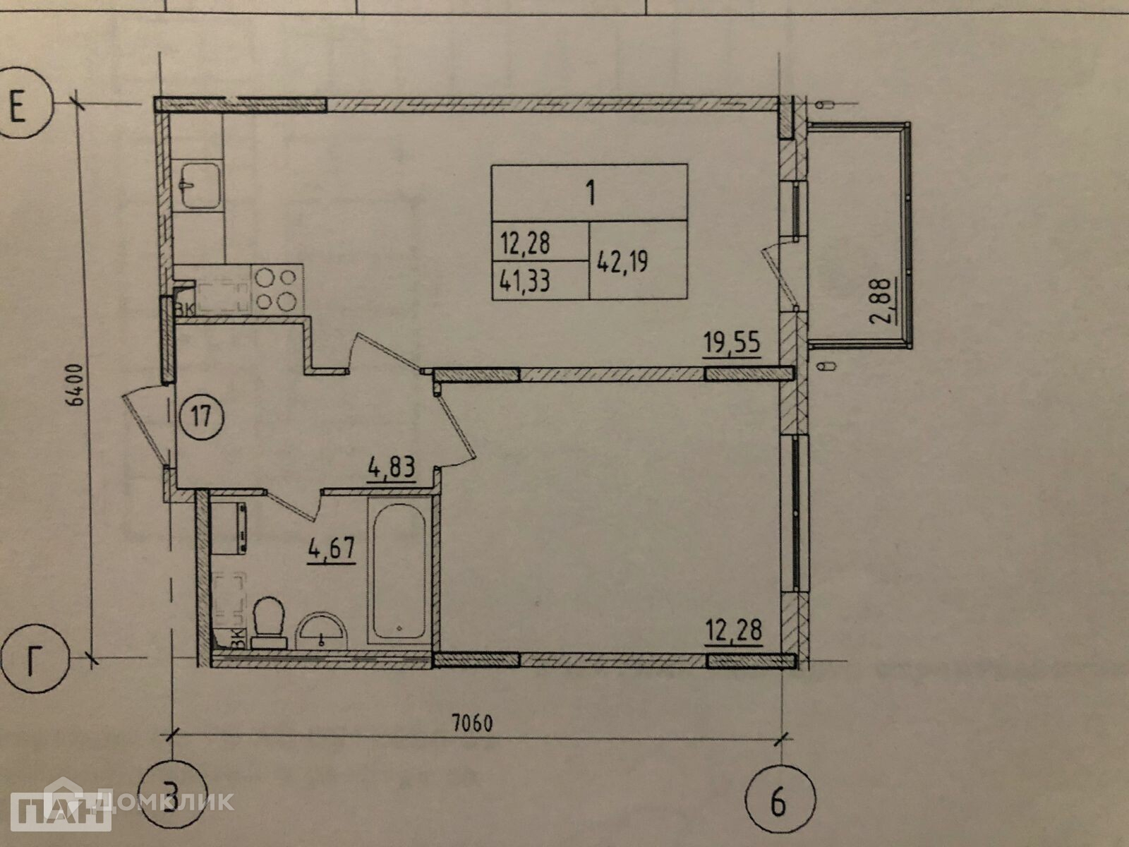 Балкон, лоджия 1 балкон