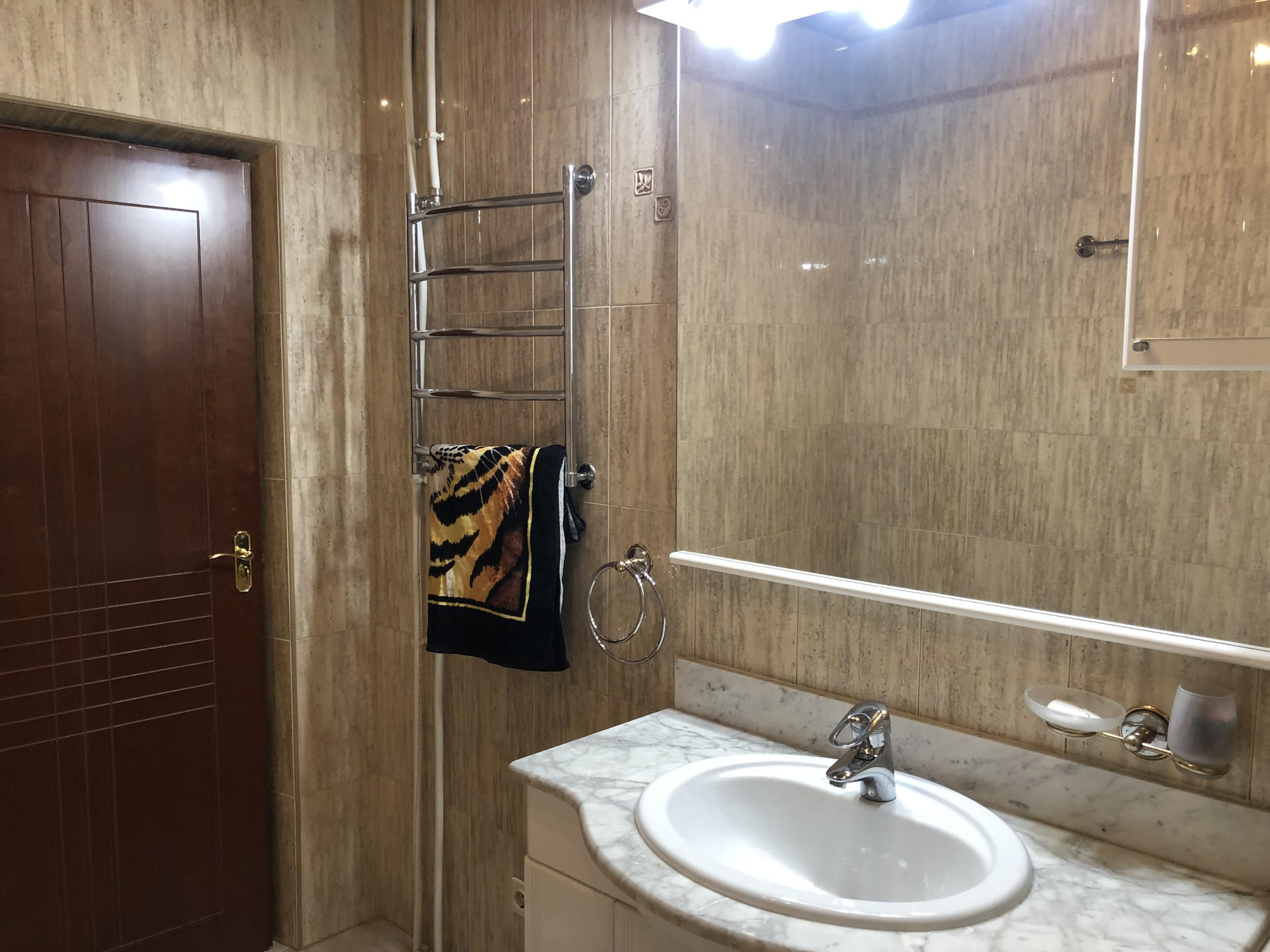 Квартира теплая с качественным ремонтом. Кухня со встроенной техникой, полы с подогревом на кухне и в коридоре. В квартире установлено 2 кондиционера, в одной из спален есть балкон. В подвале установлен водонагреватель на 200л, установлены счетчики на отопление, воду.