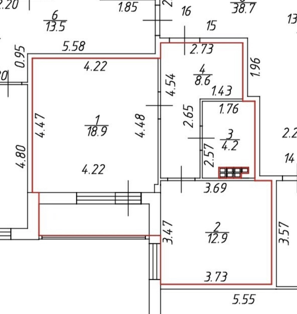 Жилая площадь 18.9 м2