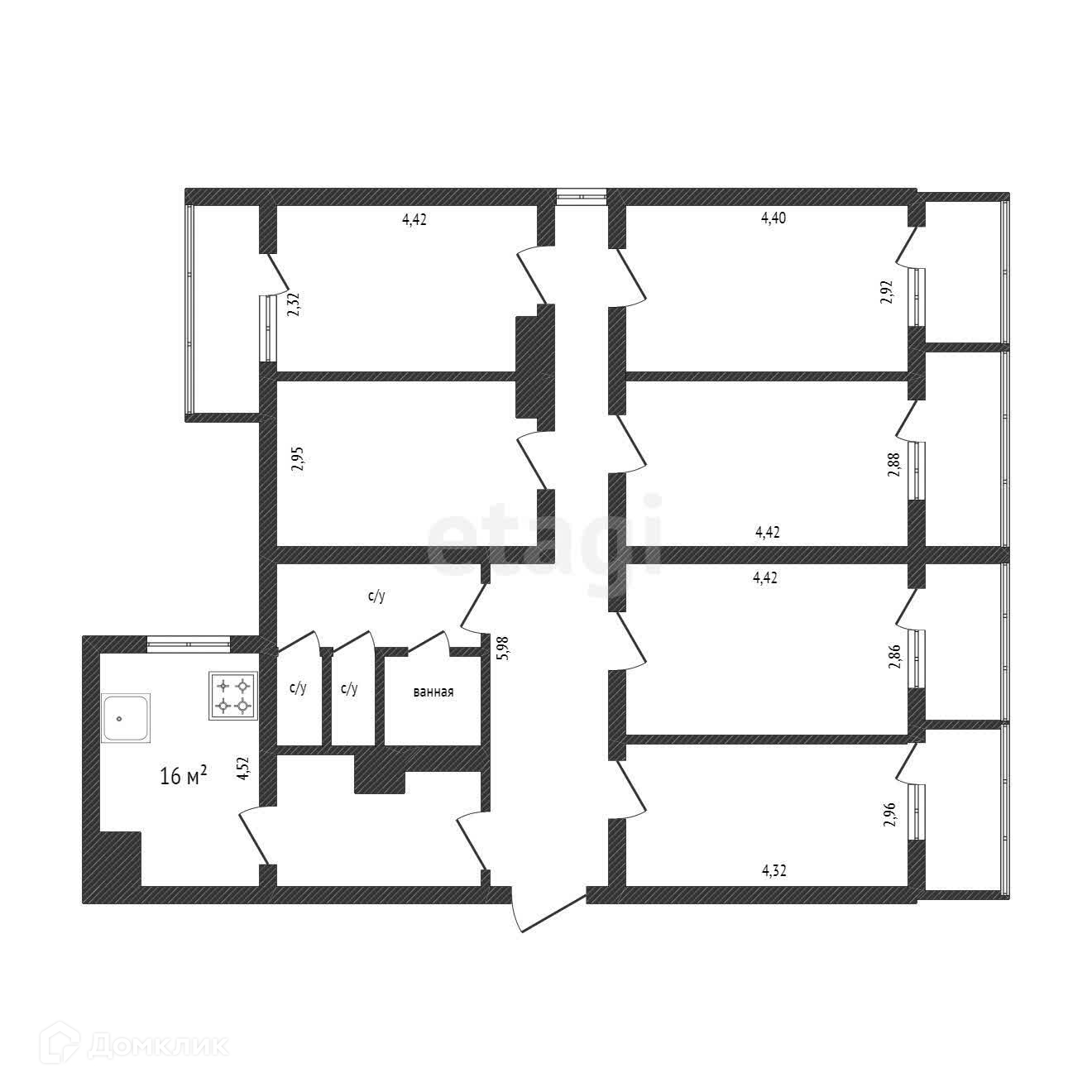 Площадь кухни 16 м2