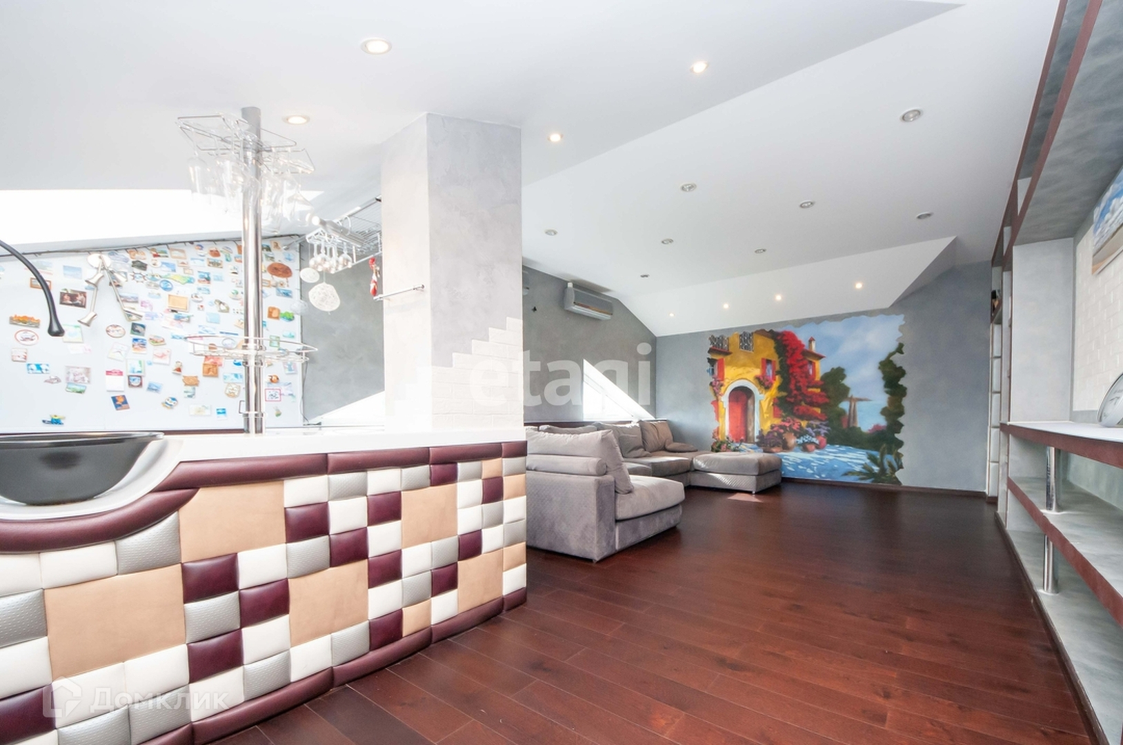 Далее, вы попадаете в огромную гостиную с отдельной барной стойкой. Комната идеально подходит, как для отдыха, так и для шумных вечеров!