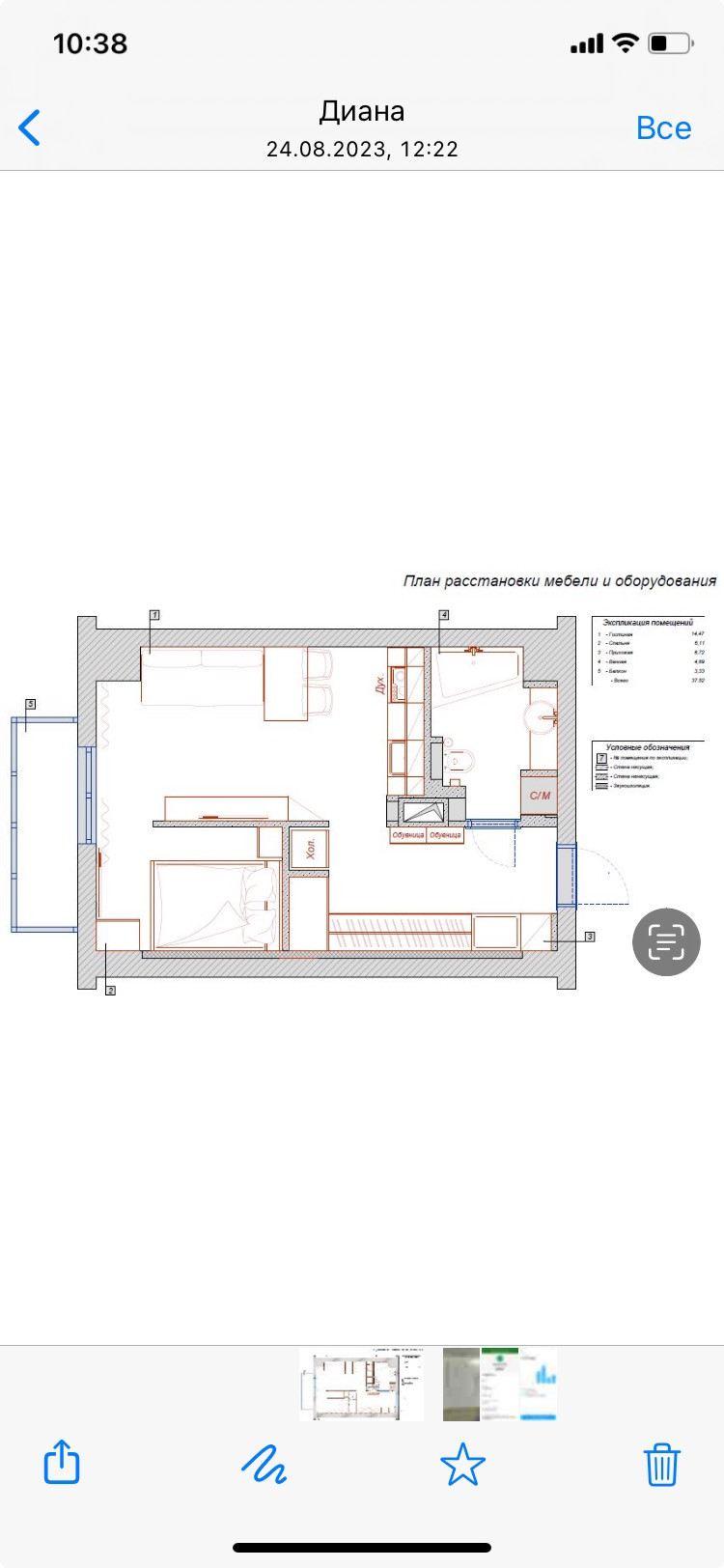 Общая площадь 36.3 м2