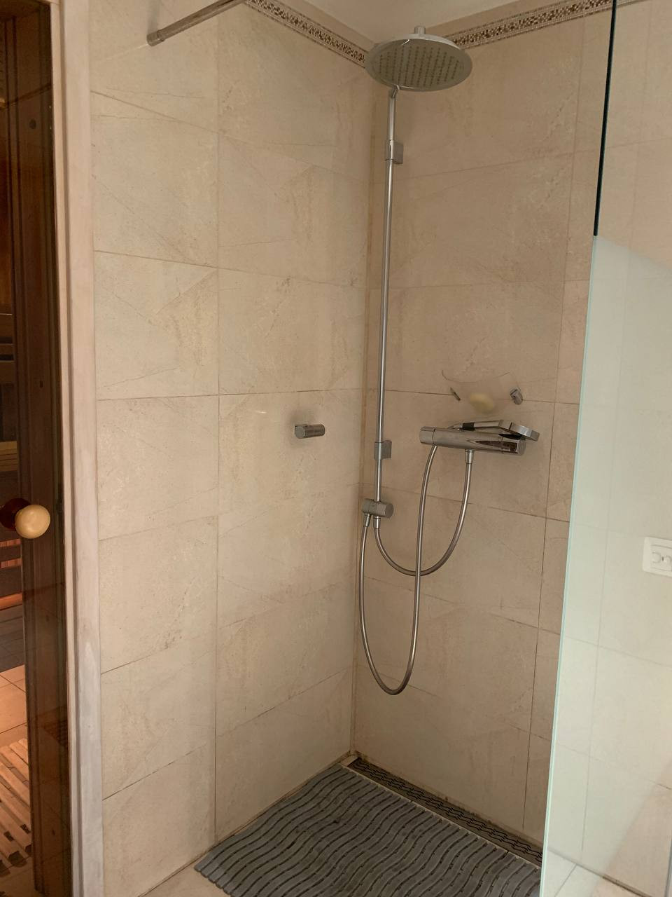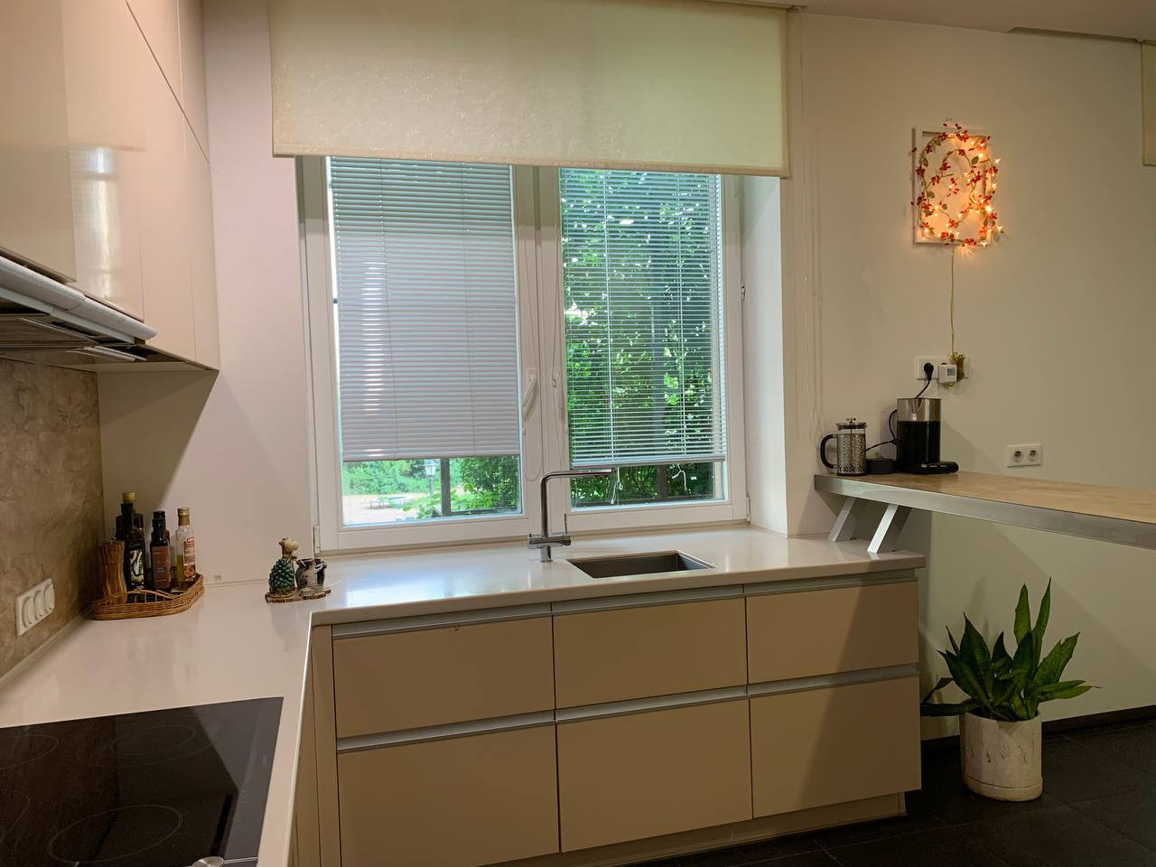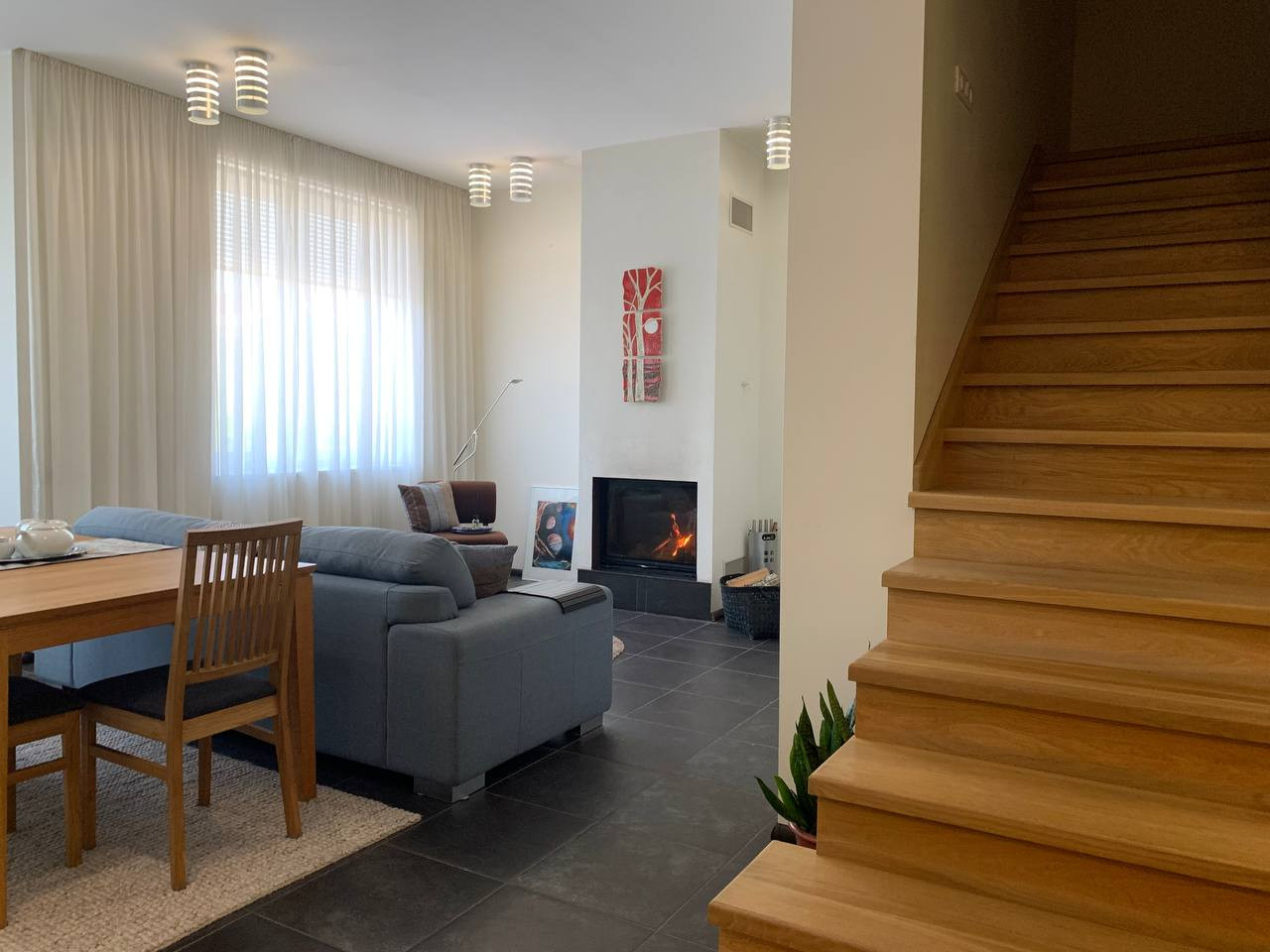 Таунхаус в великолепном состоянии, ухоженный, без обременения, продажа от собственника. Есть всё для комфортной жизни, таунхаус продается вместе со встроенной кухней и полностью оборудованными ванными комнатами и санузлами. В цокольном этаже расположен гараж с 2 воротами и кладовка(s-50 м. КВ). На первом этаже находится кухня-столовая, гостиная с камином и гостевой санузел с прачечной (стиральная и сушильная машины), а также кладовкой, замаскированной под кухонный шкаф с удобным доступом к газовому котлу. На втором этаже две комнаты и основная ванная комната с гидромассажной ванной, двойным умывальником и унитазом. На третьем этаже находится спальня и игровая зона со столом для пинг-понга, а также мастер санузел с биде, совмещенный с сауной. Все полы в доме оборудованы водяными теплыми полами. Есть центральная система вентиляции.