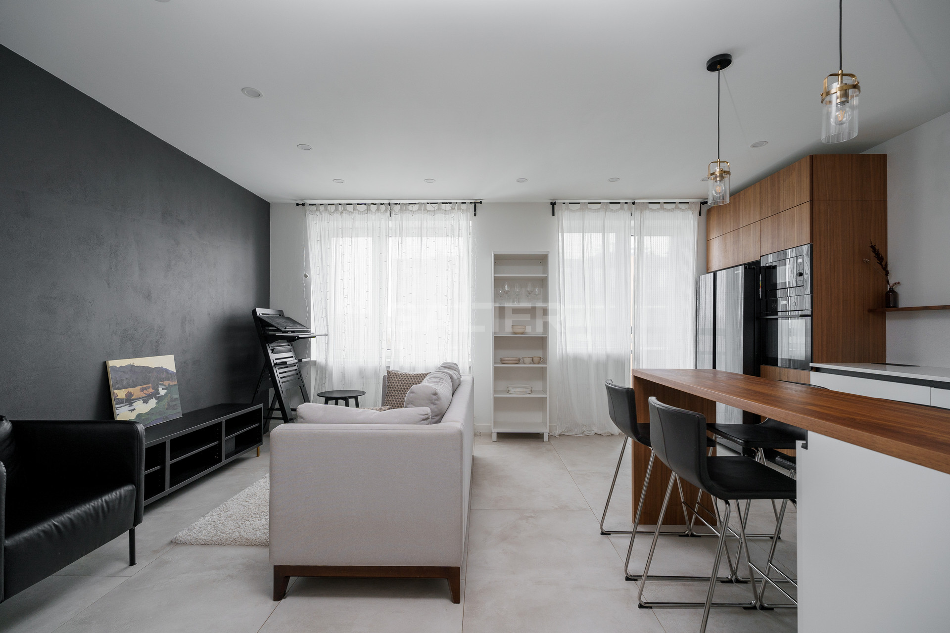 Красивый дизайнерский ремонт. Высокие потолки.
