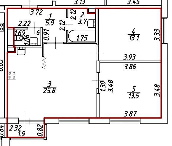 Площадь кухни 25.8 м2