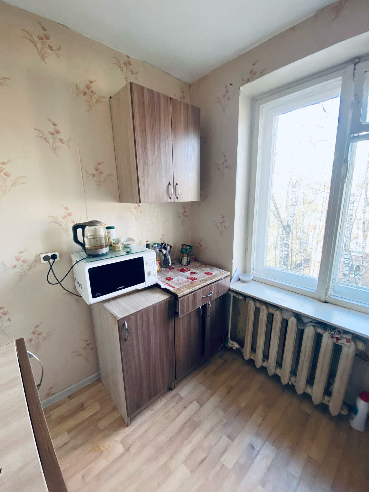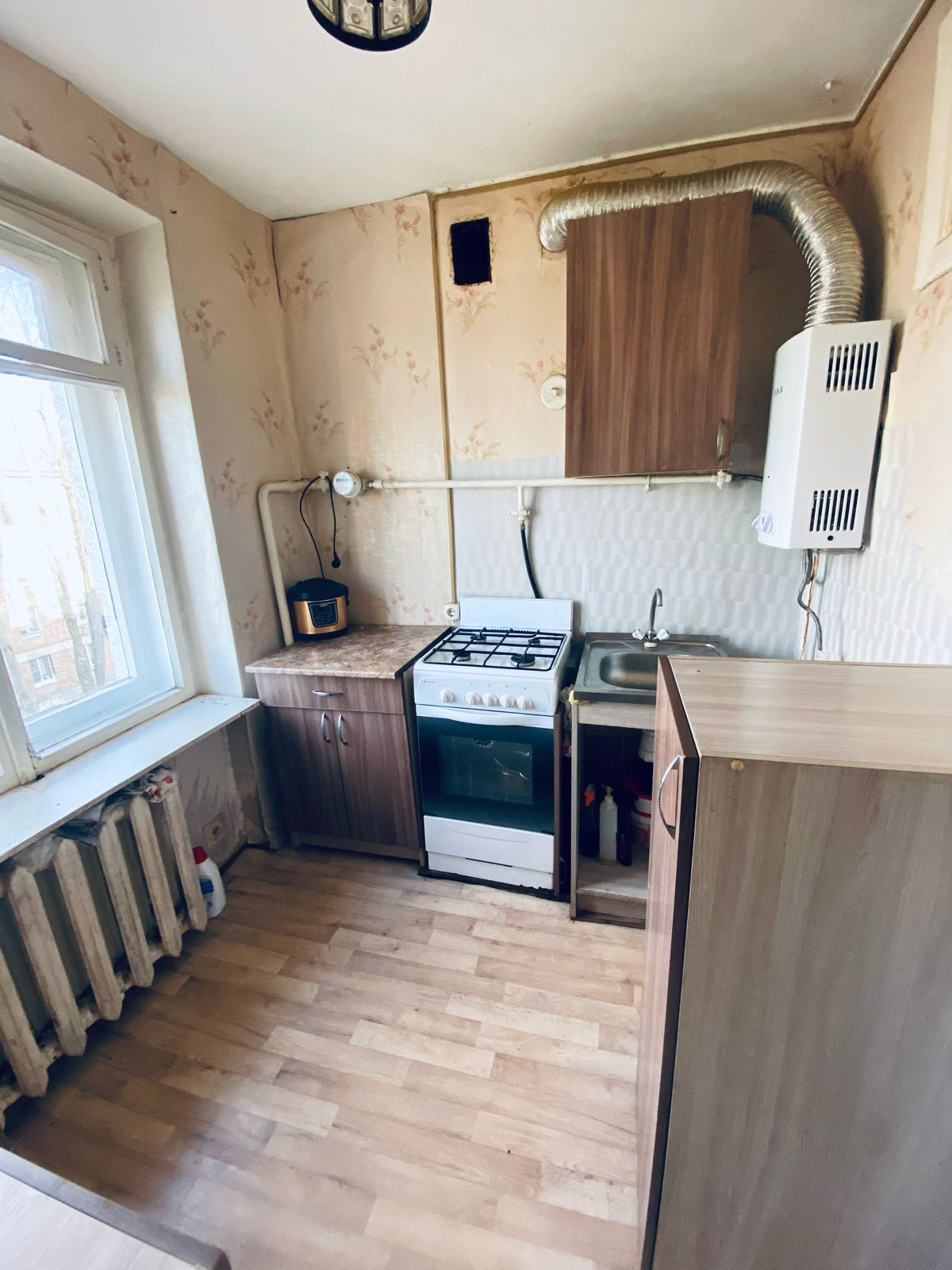 Квартира светлая, угловая с балконом. . Окна выходят на тихий двор, утопающий в зелени, балкон выходит на дорогу.  Санузел совместный. Две раздельные комнаты. Кладовая, кухня с новой газовой колонкой, следовательно отключение горячей воды вас не будет касаться.