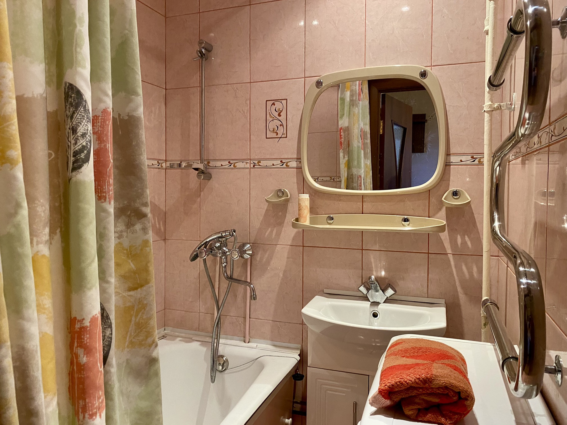 Раздельные ванная и туалет с более свежим наполнением- современная кафельная плитка, подвесной потолок, хорошая сантехника.