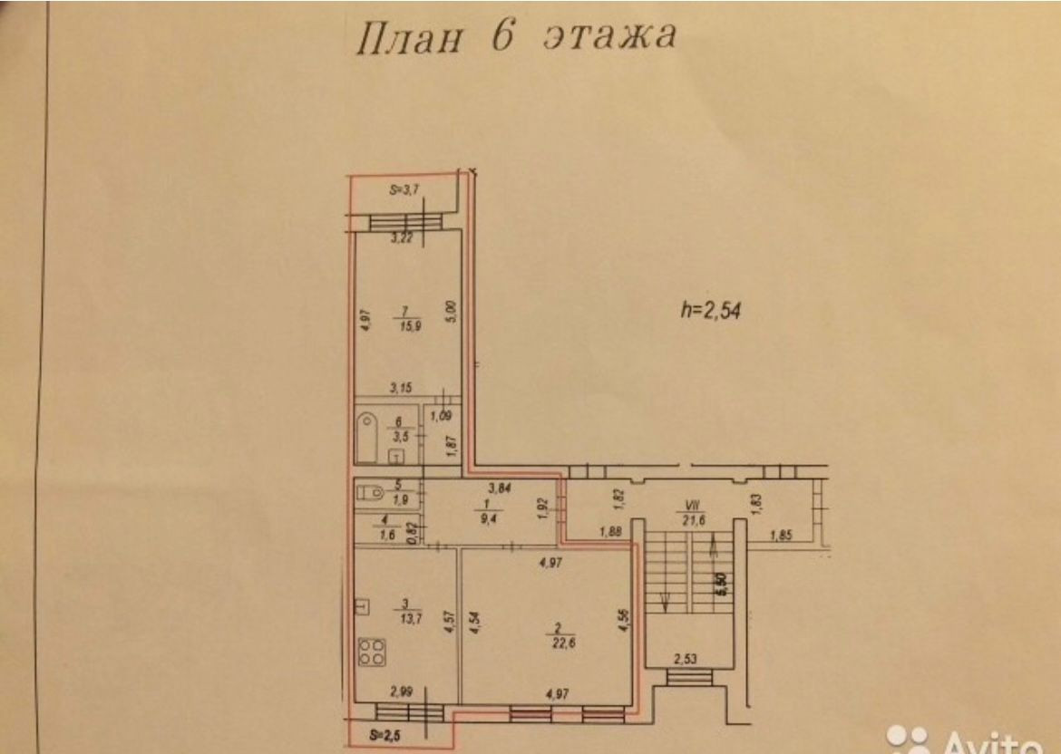 Высота потолков 2.5 м