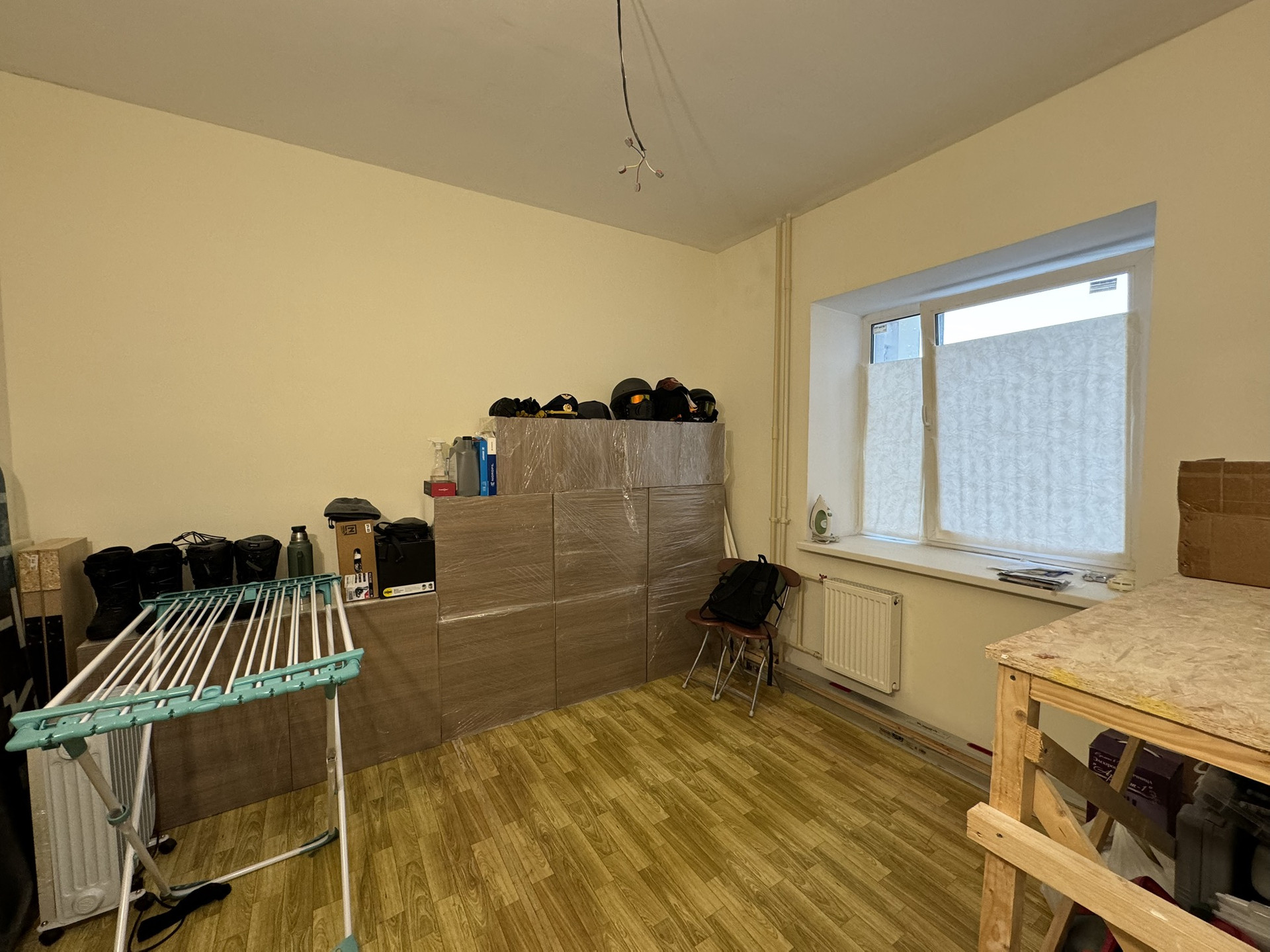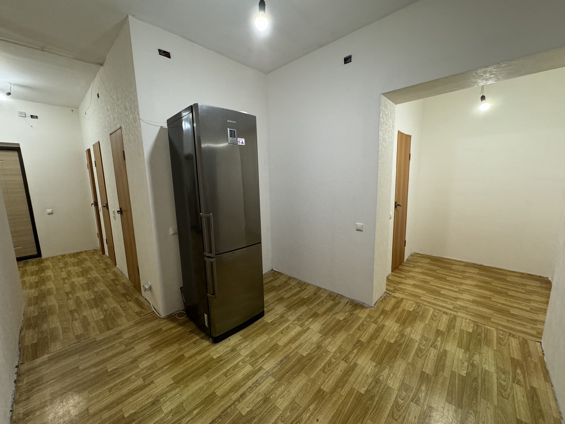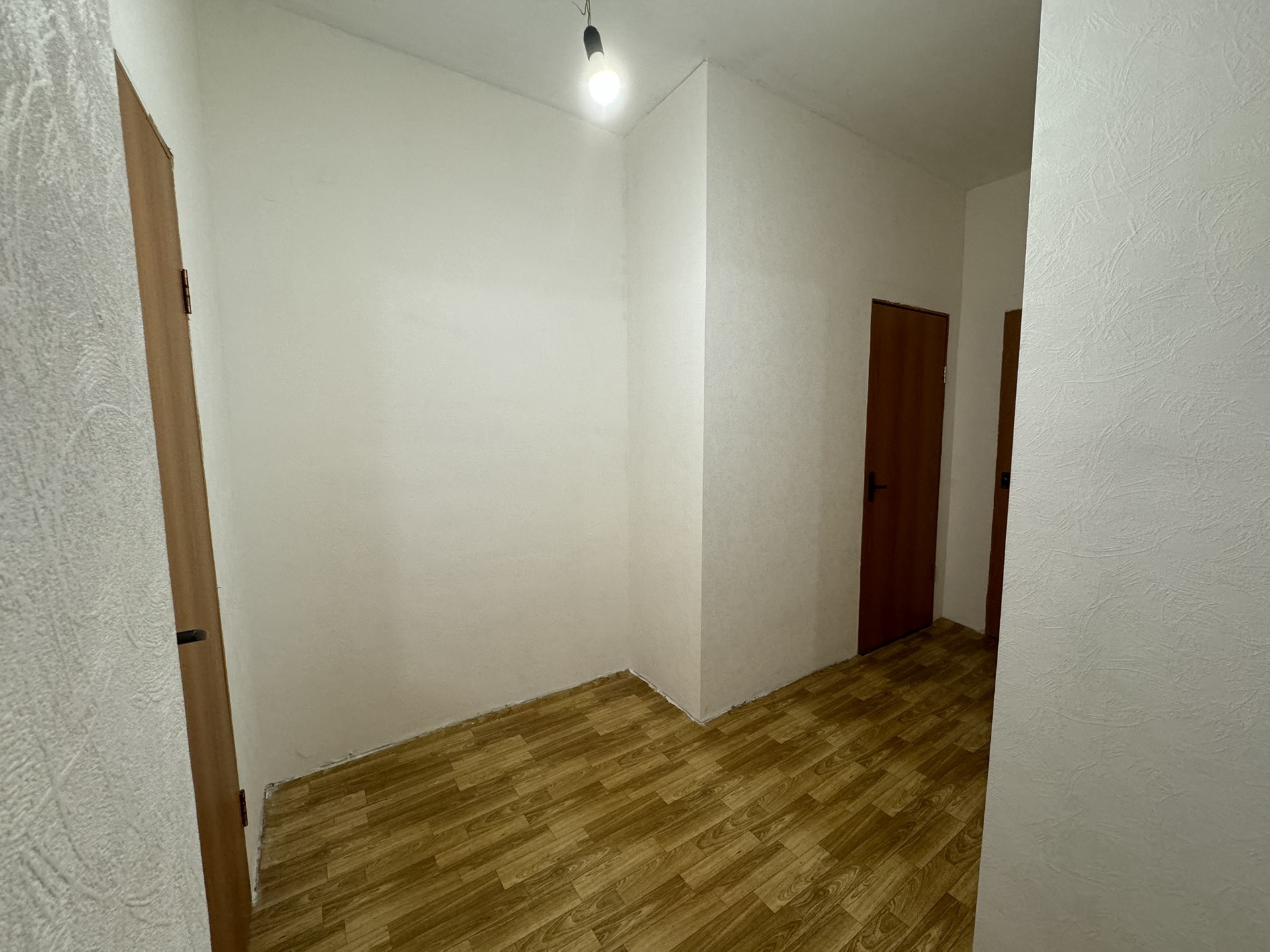 У квартиры просторная планировка с тремя небольшими гардеробными(кладовками).
