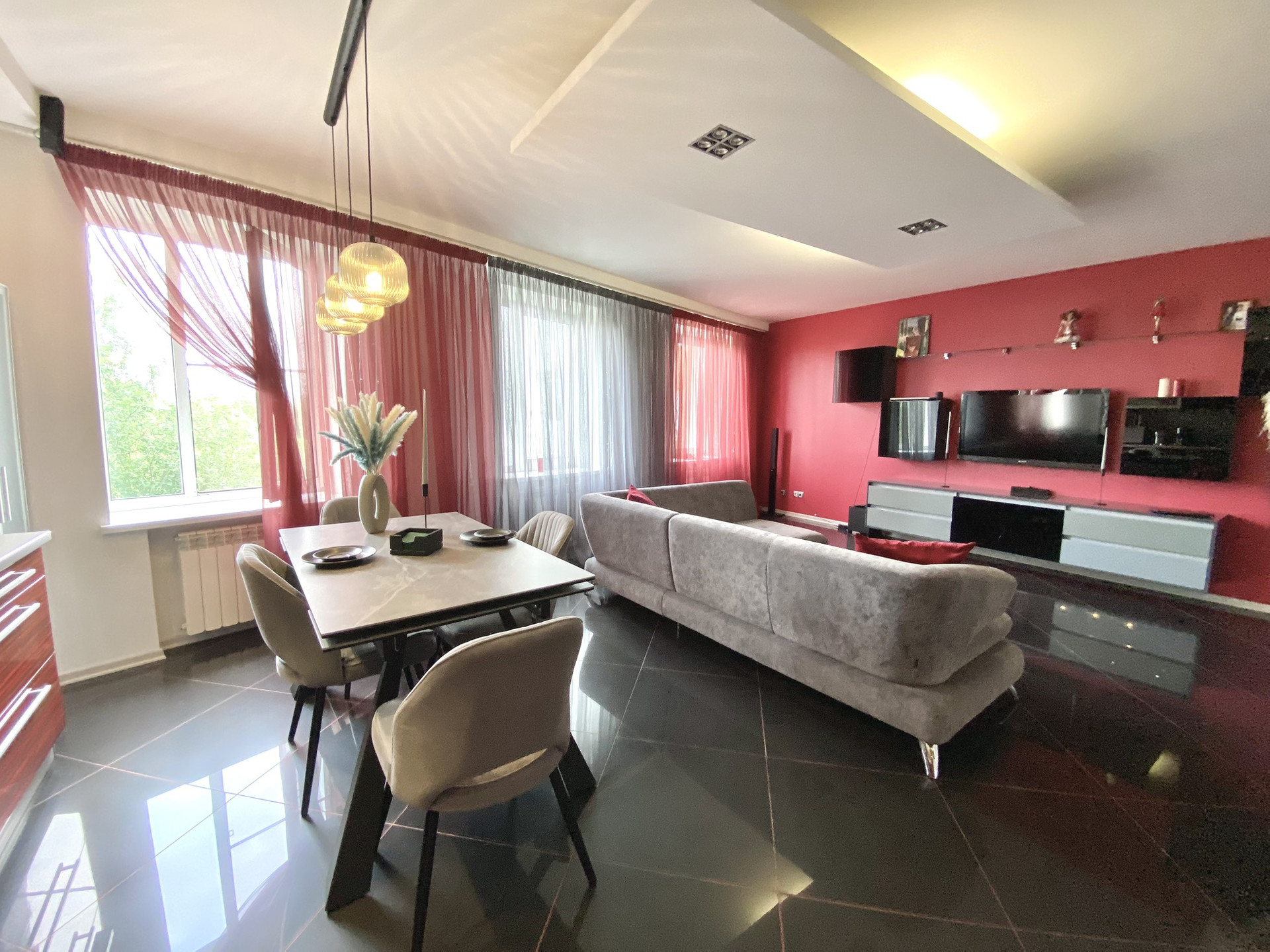 Очень стильная квартира, с дизайнерским ремонтом и дорогой мебелью.