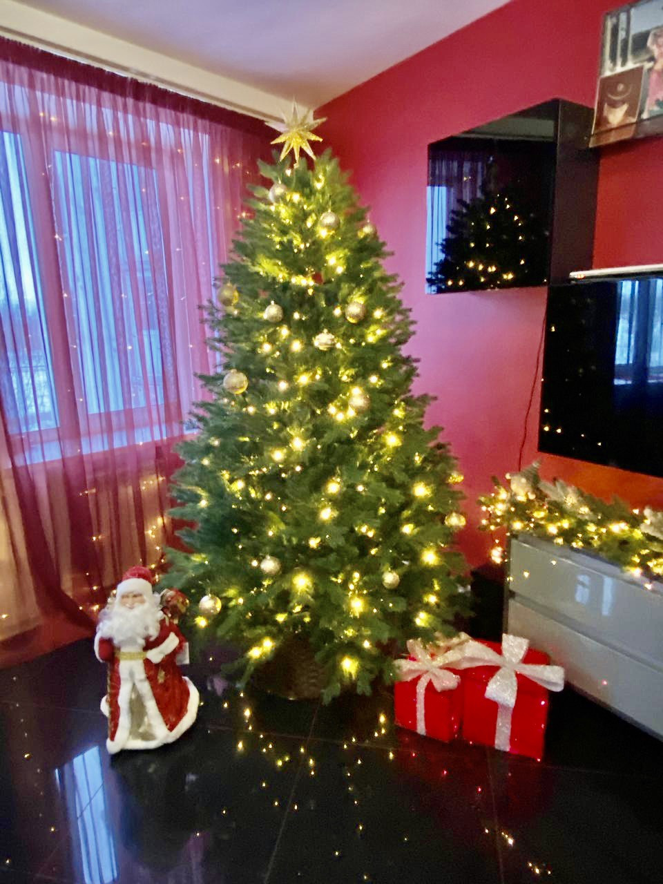Елка « Версальская «купленная для большой гостиной . бренда Мах . Christmas, полностью литая с впаянными лампочками, остается новому хозяину.