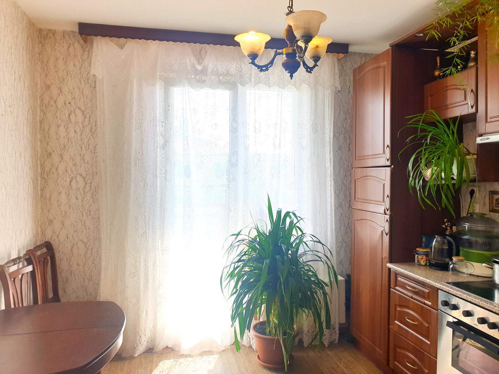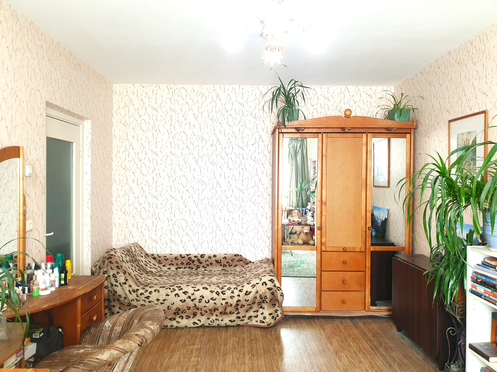Жилая площадь составляет 20.1 кв.м., просторная кухня — 9.8 кв.м. Квартира уютная, новым владельцам можно сразу заселиться. Также имеется балкон, который можно обустроить под зону отдыха или зелёный уголок.