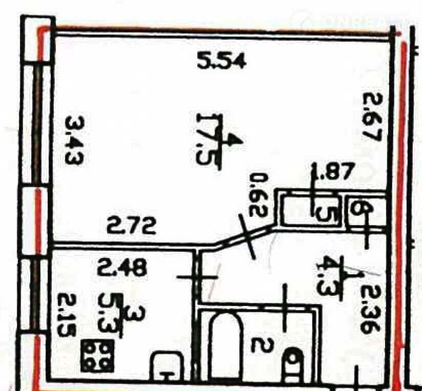 Жилая площадь 17.5 м2