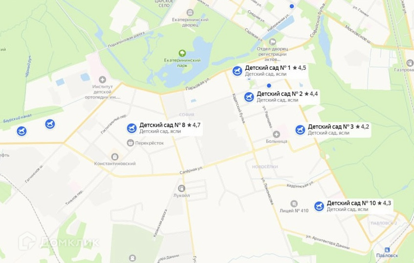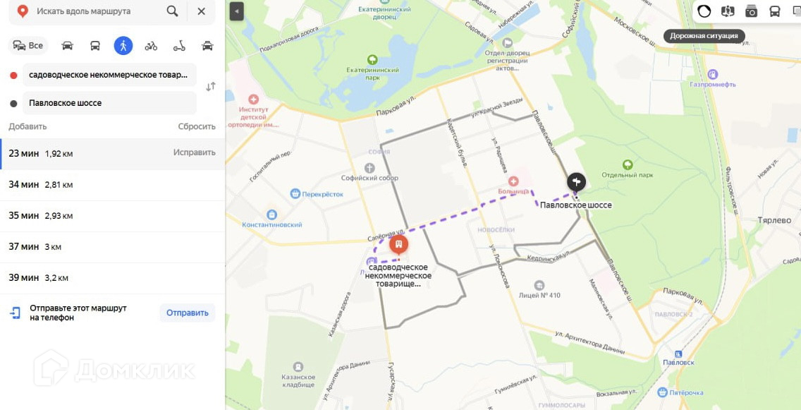 10 минут транспортом до жд станции Павловск;