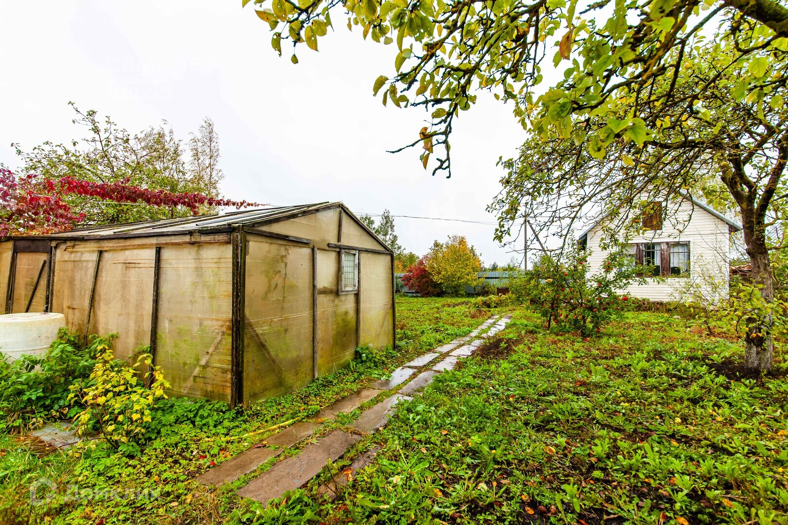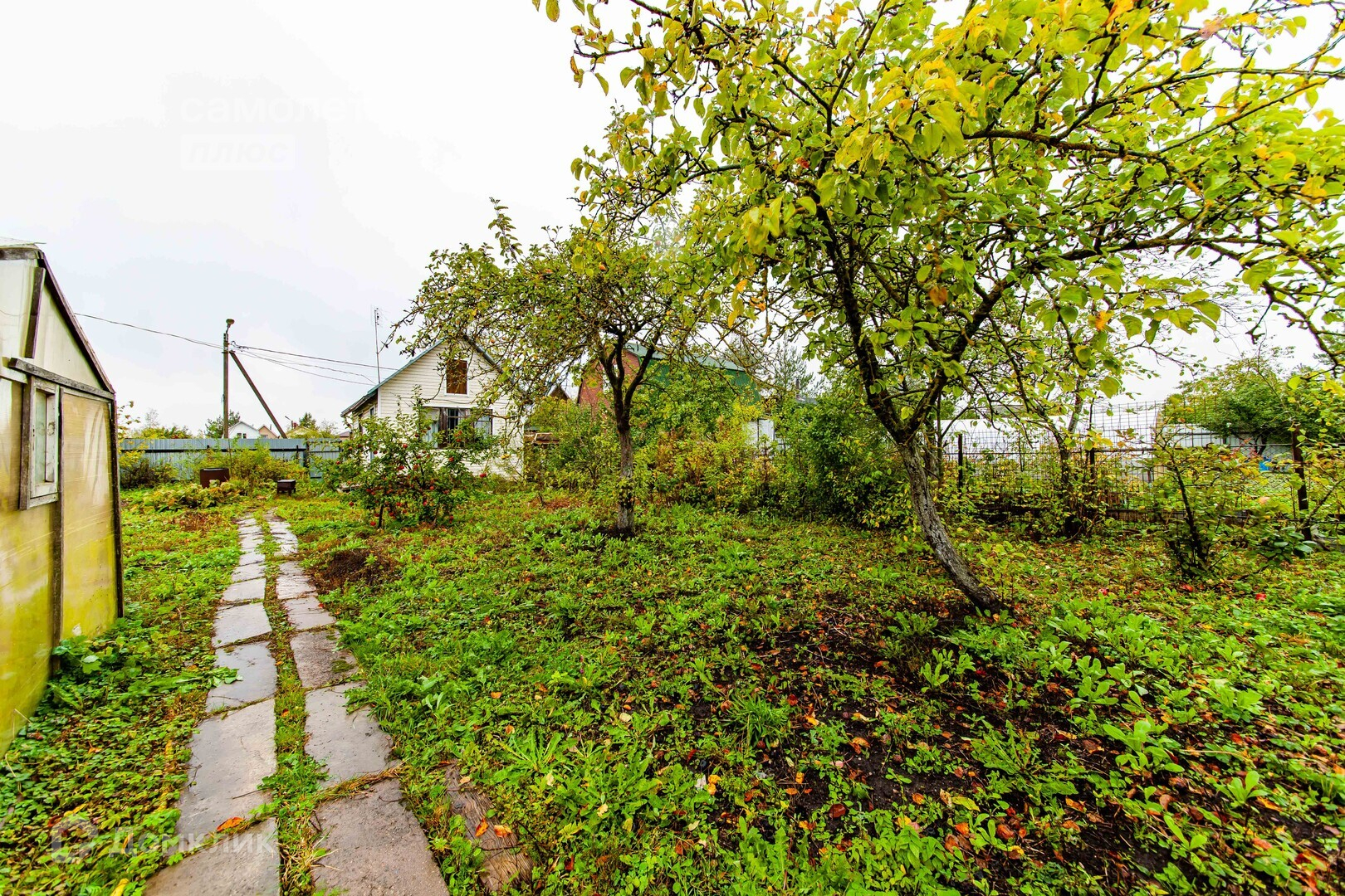 Благоустроенный ухоженный участок,плодоносящий фруктовый сад, к садовому дому ведет асфальтированная дорожка.