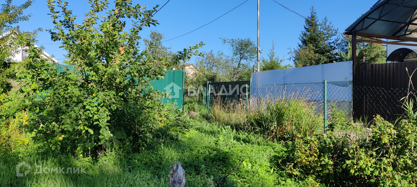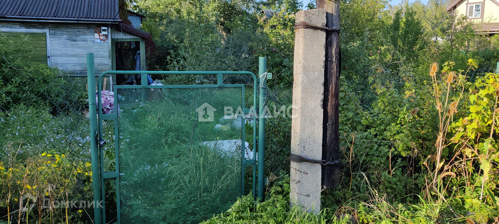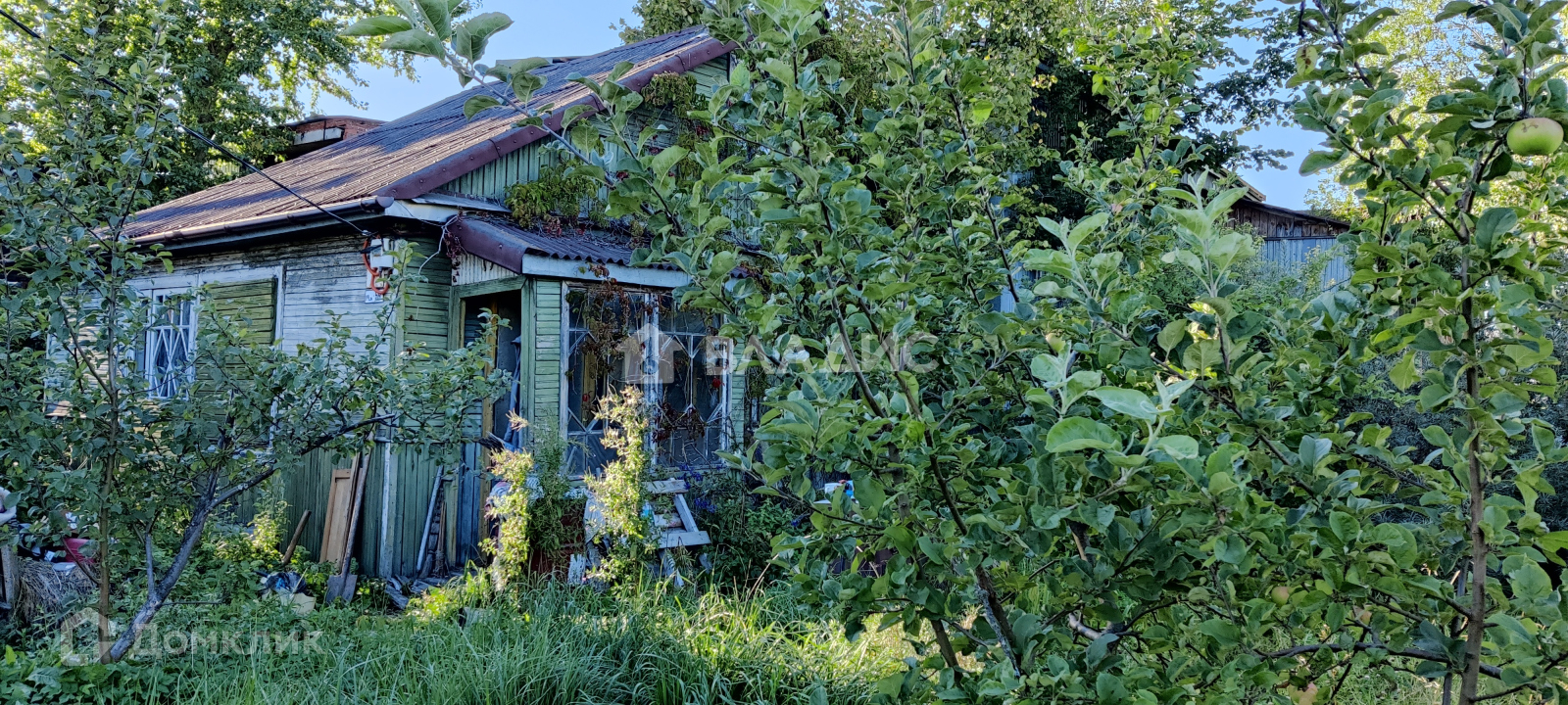 На участке есть старый небольшой домик, растут яблони, сливы, сморода.