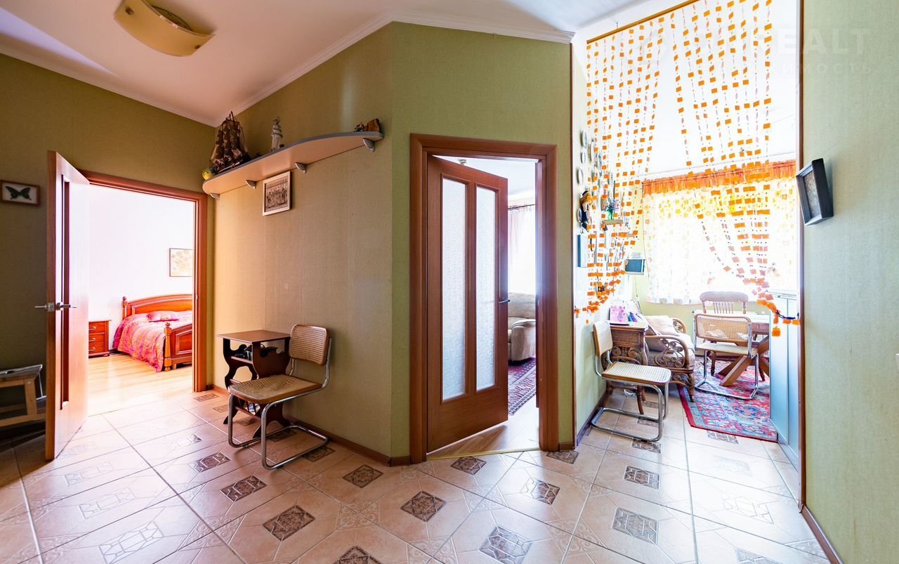 О КВАРТИРЕ:                                                                                  Квартира односторонняя, в хорошем состоянии. Высоченный первый этаж. Раздельные комнаты 19.2 кв/м.  18.4 кв/м, кухня 12.2 кв/м. Удобная планировка. Окна расположены в зеленый двор. Потолки 3 м. Совмещенный просторный санузел 6.6 кв/м с окном. Электроплита. Газа в доме нет. Два ВМЕСТИТЕЛЬНЫХ шкафа в коридоре и спальне. Вся необходимая мебель и техника.