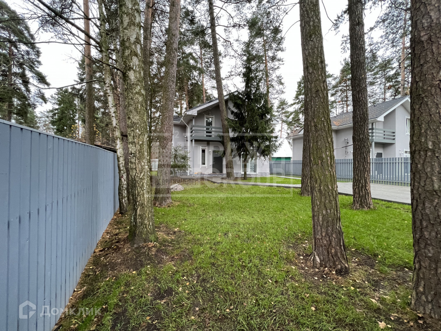 Посажен газон, растут лесные деревья.