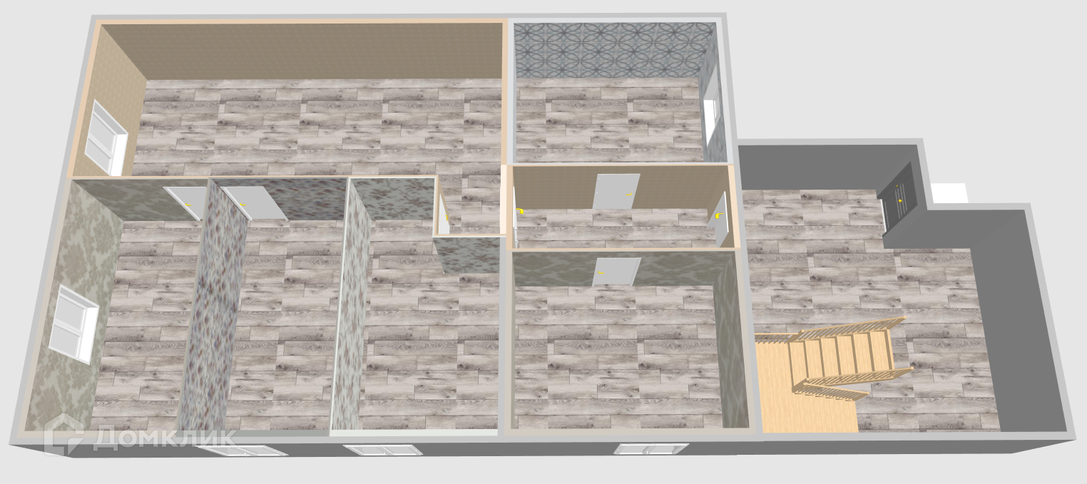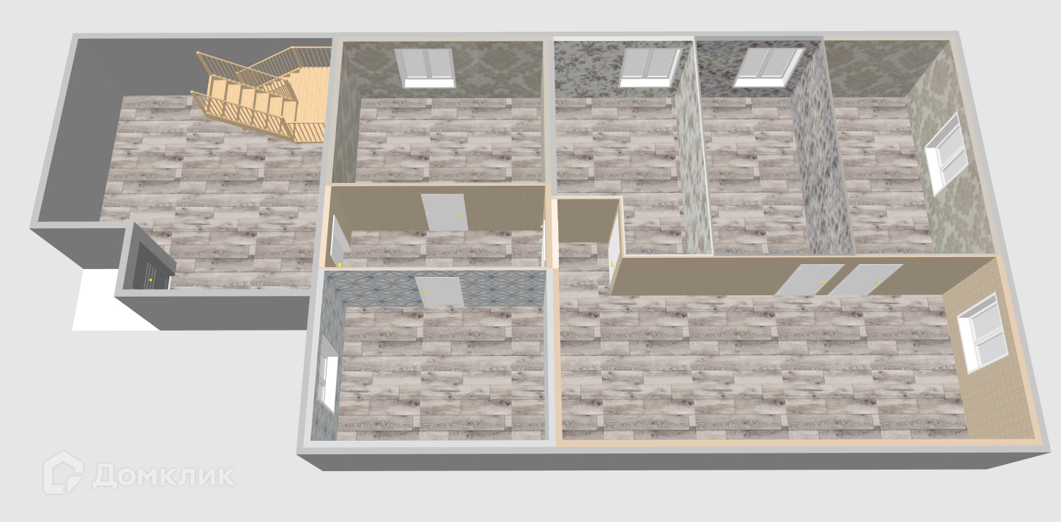 7.6 м.кв., 5 комнат: 16.8 м.кв, 7.3 м.кв, 6.9 м.кв, 6.7 м.кв, 6.7 м.кв.