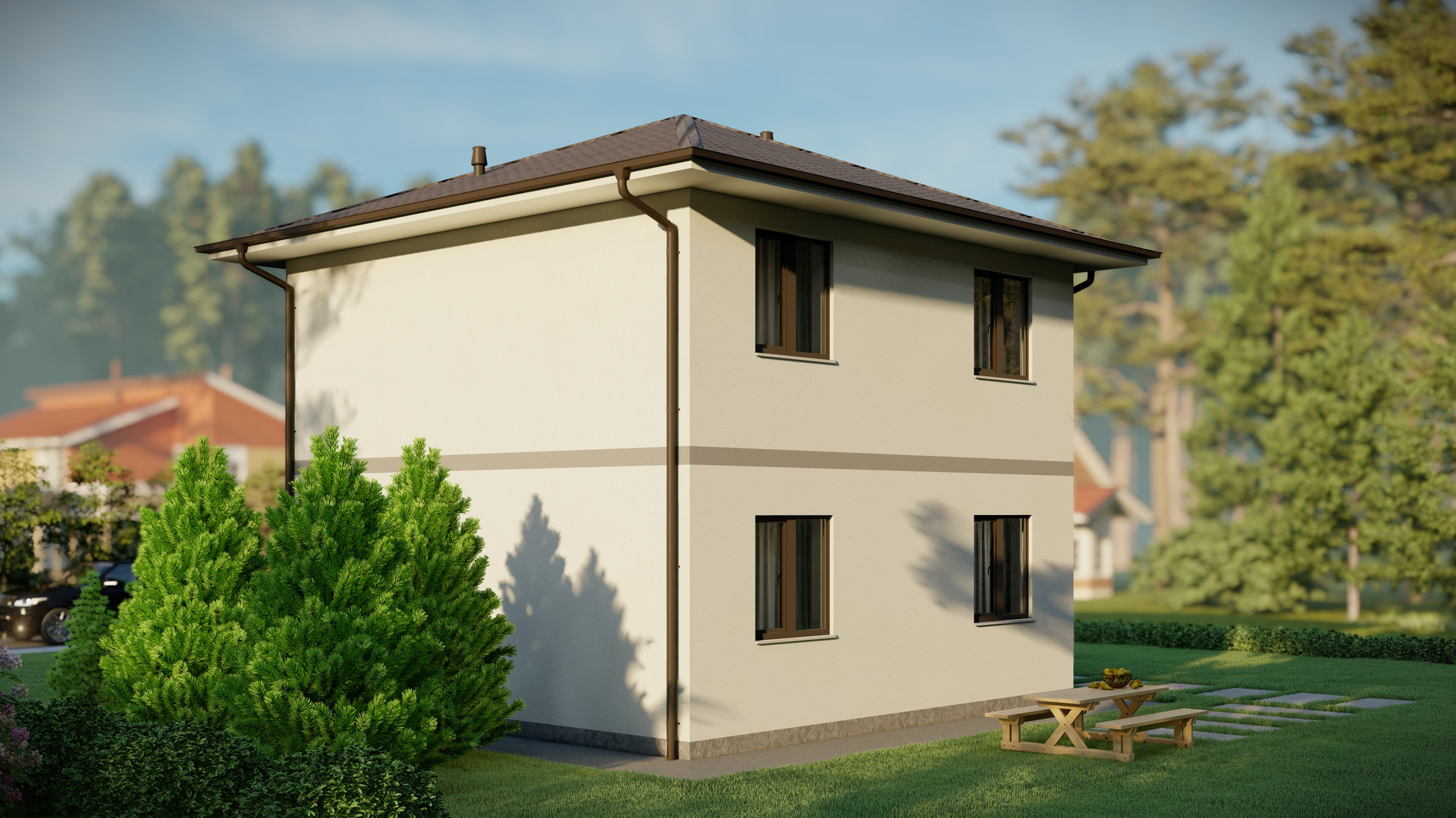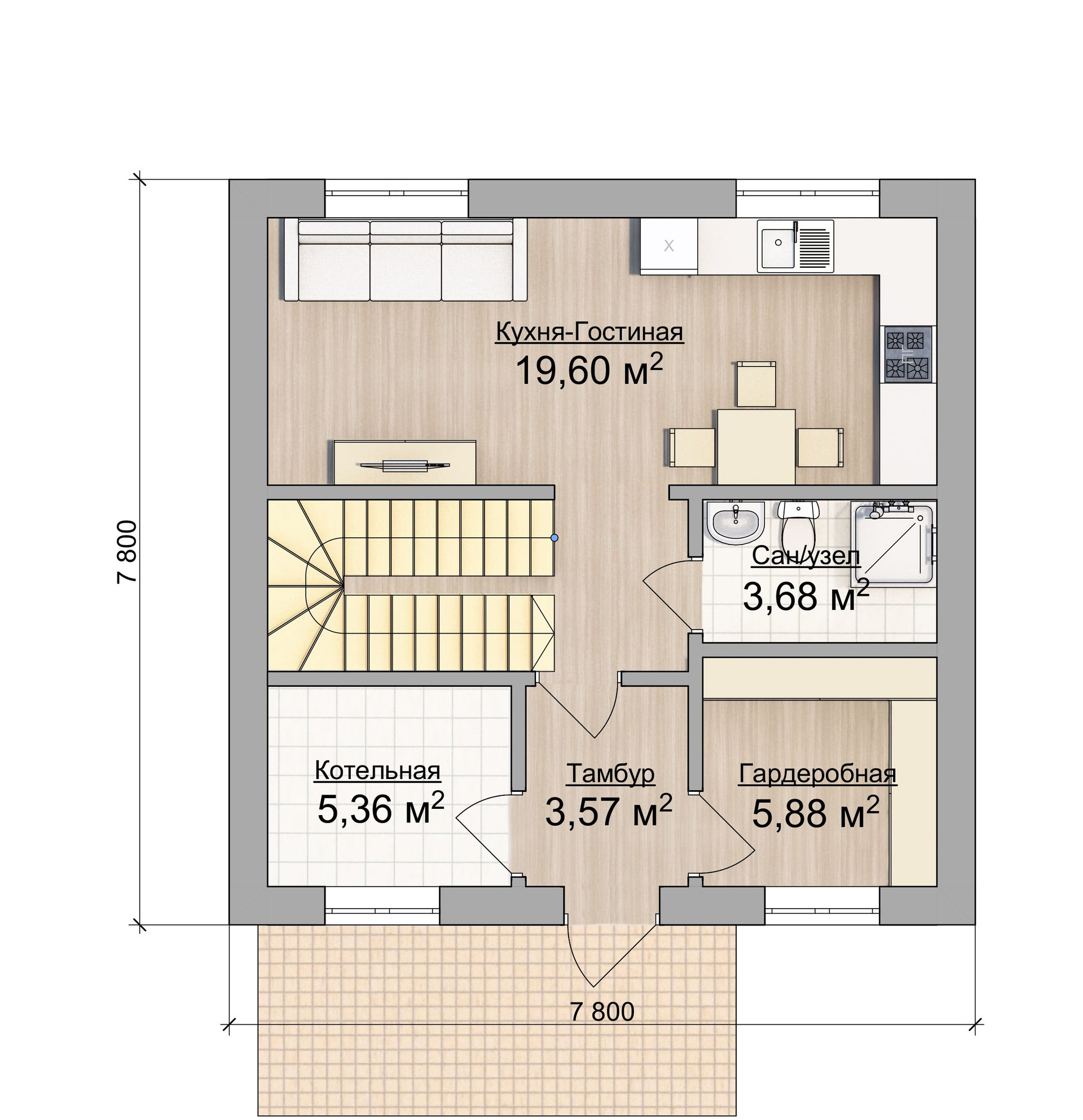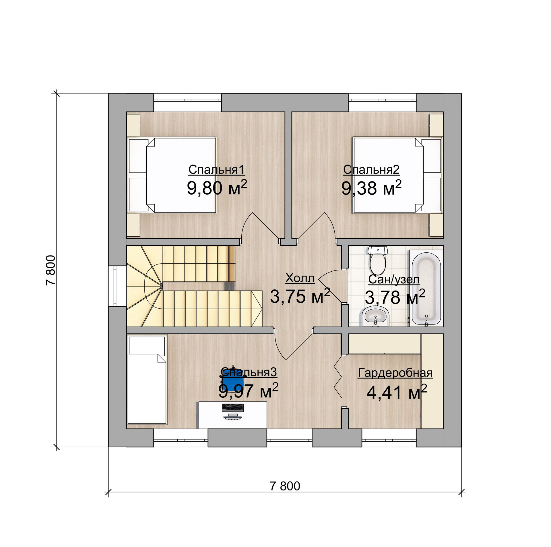 Представляем вашему вниманию двухэтажный дом 7,8х7,8 по проекту Сумароково, общей площадью 122 кв м с живой, меняющейся панировкой. Это полностью отработанный проект, который постоянно совершенствуется и масштабируется. Дом из газобетонных блоков на монолитном плитном фундаменте. Он имеет внутреннюю площадь 90 кв м и разместил в себе все необходимые для комфортной жизни помещения: кухня-гостиная, 3 жилых спальни, 2 санузла, 2 гардероба, котельная и прихожая. Все продумано до мелочей. Более того, вы всегда сможете адаптировать дом под себя, увеличить площадь или изменить планировку.