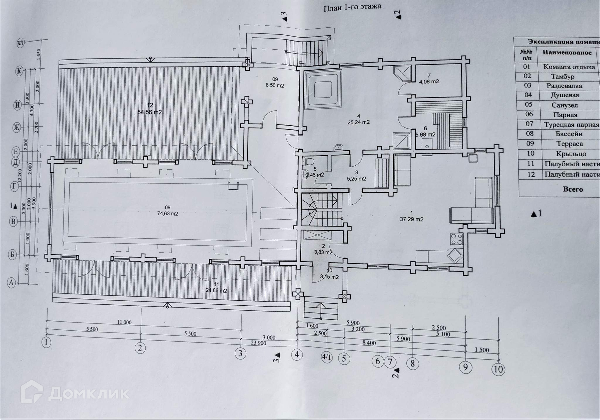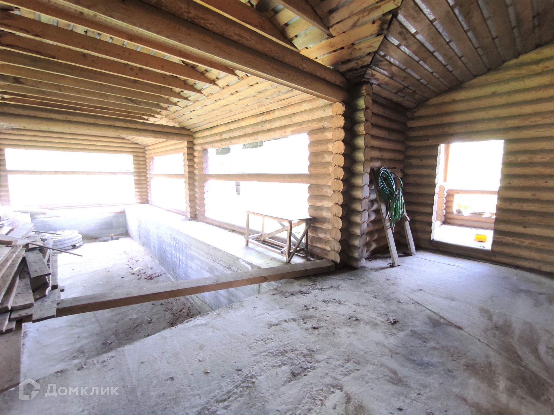 В продаже появился двухэтажный дом с полноценным бассейном длиной 11м и шириной 3м, построенный из оцилиндрованного бревна диаметром 22см. Перекрытия усилены клеееным брусом.  Фундамент ленточный.