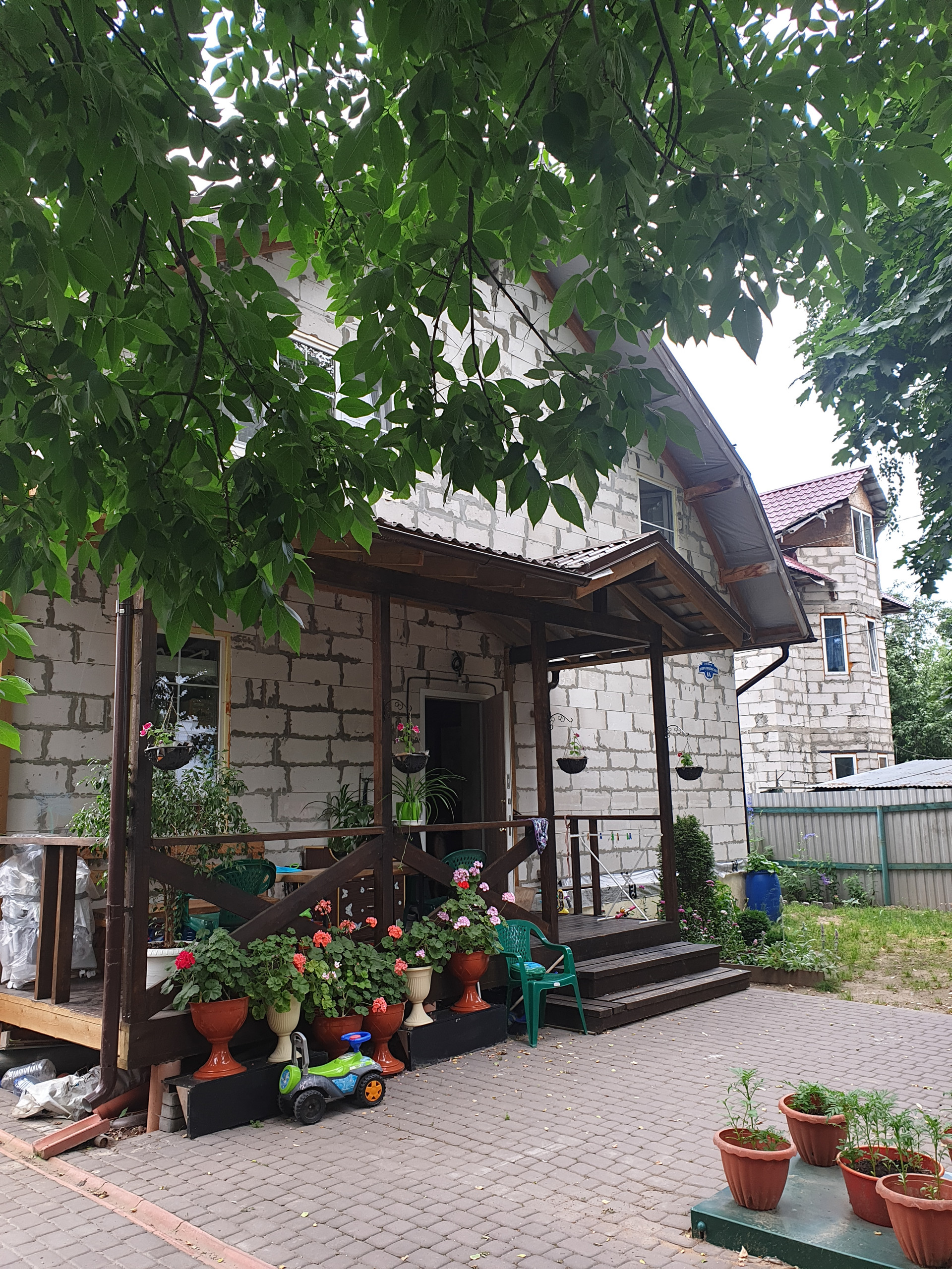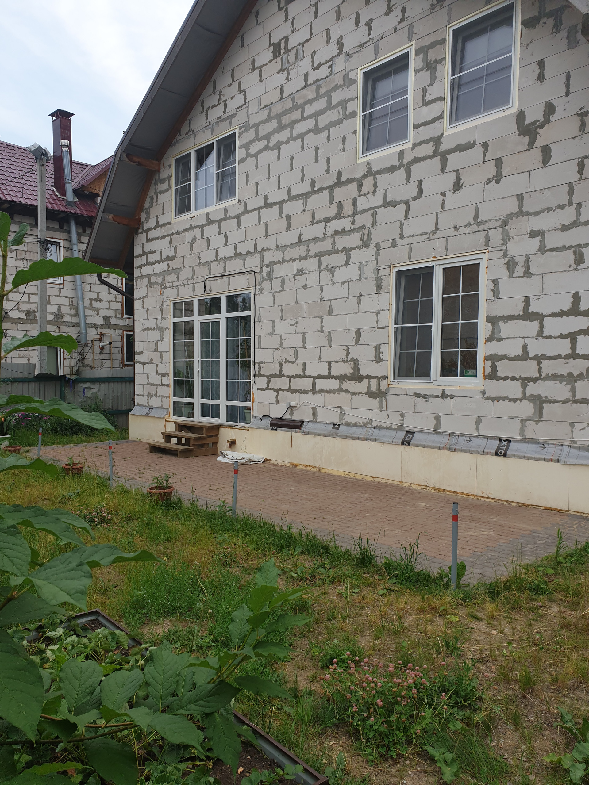 Дом не зашит с наружи, для мониторинга кладки кирпича, вы так же можете убедится, что дом без трещин и сколов. Спокойно зашить по своему вкусу.