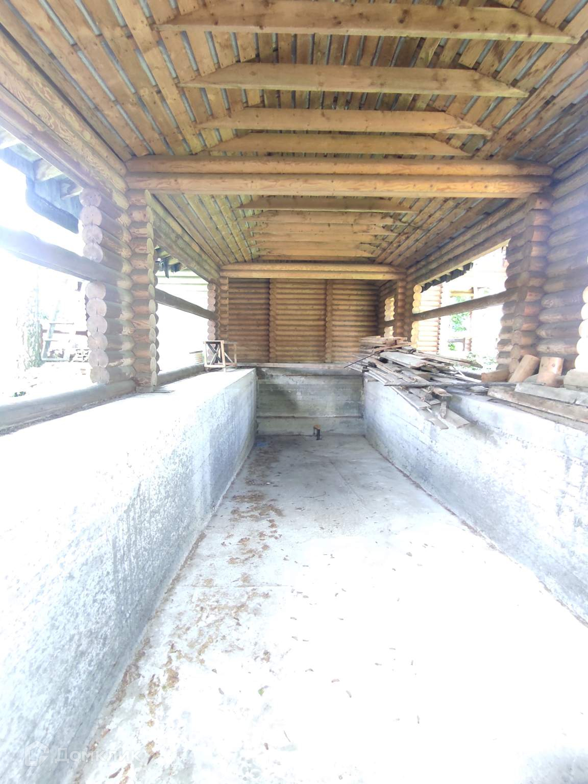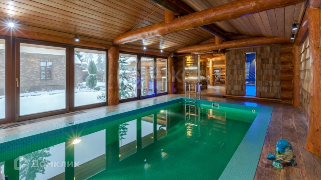 В продаже появился двухэтажный дом с полноценным бассейном длиной 11м и шириной 3м, построенный из оцилиндрованного бревна диаметром 22см. Перекрытия усилены клеееным брусом. Фундамент ленточный.