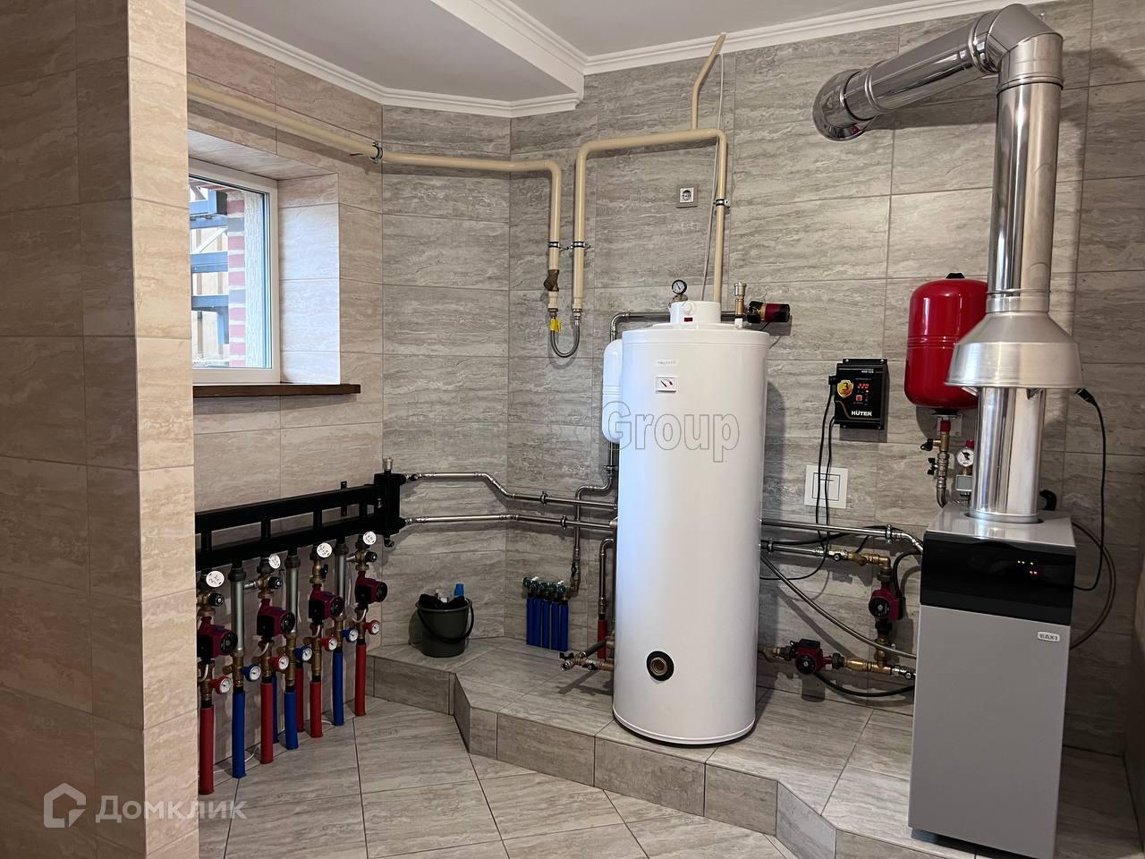 Есть много интересных дизайнерских решений. Котельная оборудована по последнему слову техники: газовый котел, система очистки воды, бойлер -120 литров.