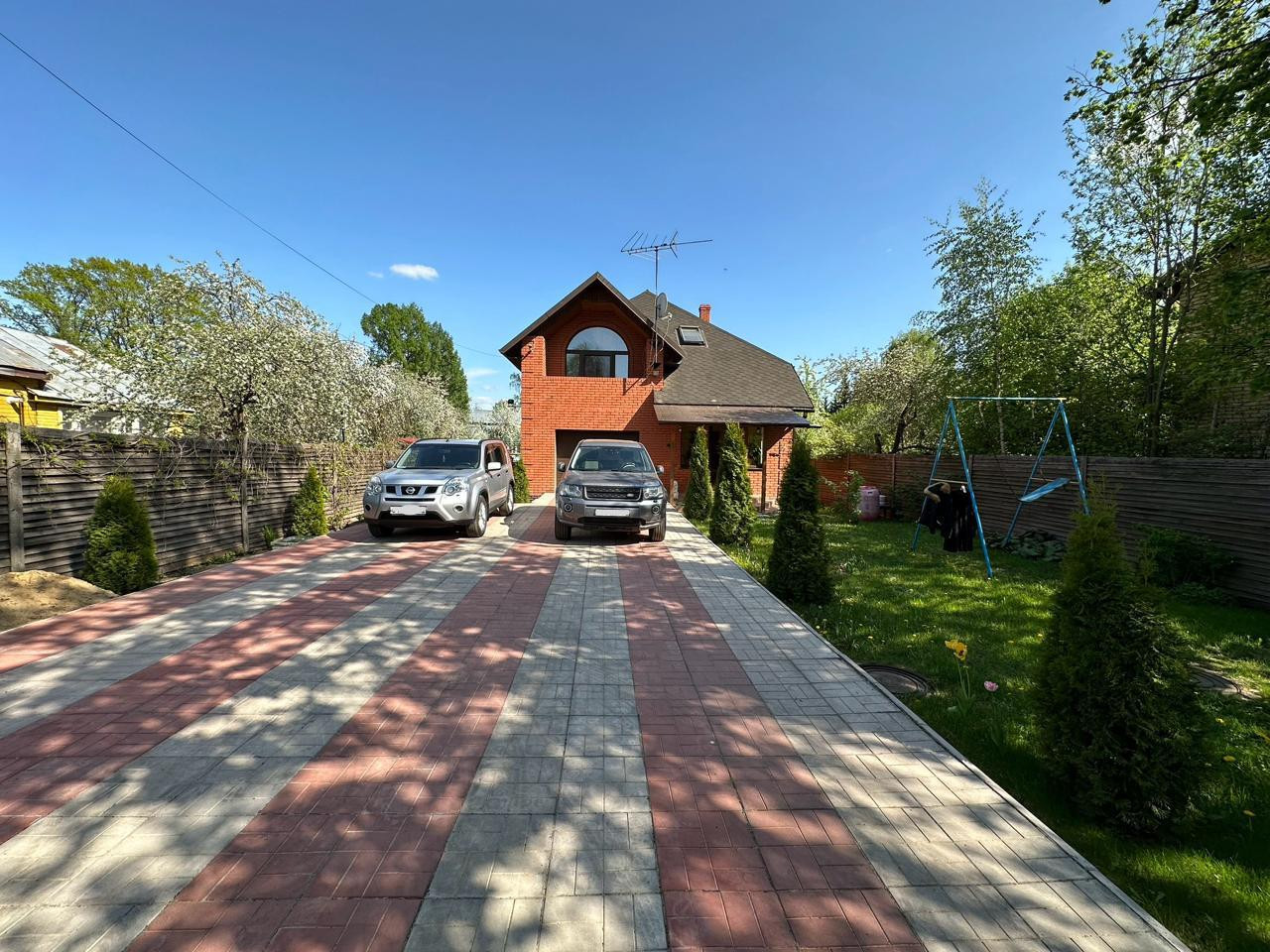 Участок огорожен забором, с автоматическими въездными воротами. Оборудован стоянкой на 5 машин.