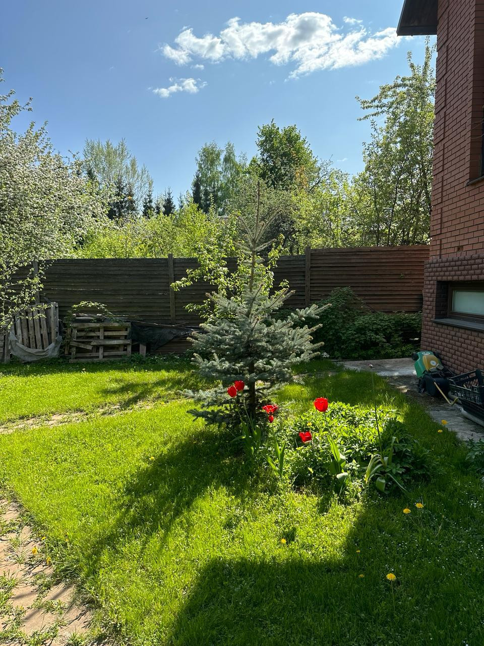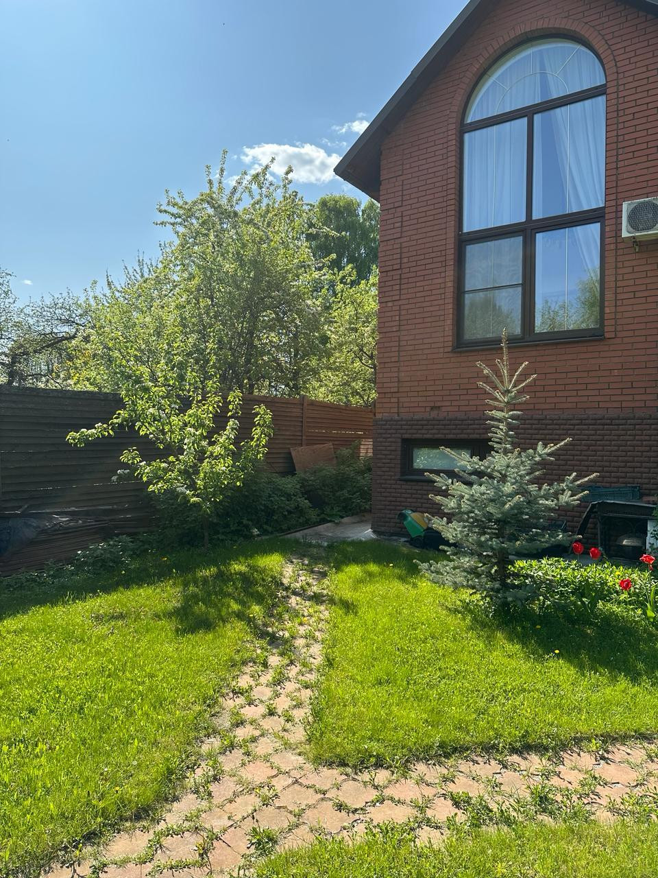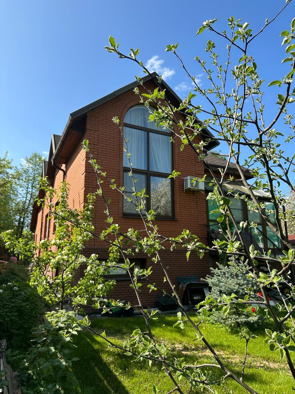На участке, общей площадью 9,5 соток, расположился просторный двор с небольшим прудом, зона барбекю, вольер для собаки, плодовые и декоративные деревья, где вы сможете создавать незабываемые моменты с семьей и друзьями.