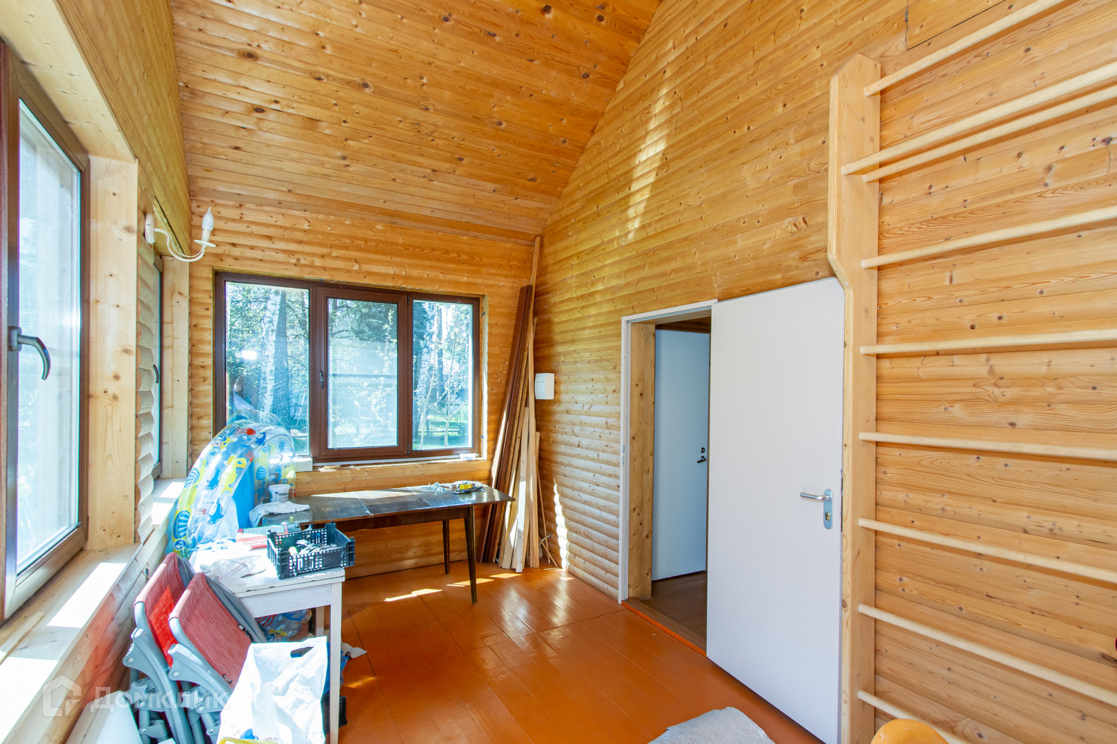 Технические характеристики дома: Фундамент ленточный ж.б., перекрытия железобетонные плиты, стены кирпич, кровля металлочерепица (Финляндия), все стропила и балки чердачного пространства выполнены из лиственницы, окна деревянные со стеклопакетами, напольное покрытие паркетная доска и плитка ( Бельгия , Италия, Испания), двери дубовые массив (Франция), сантехника (Финляндия, Бельгия, Франция). Камин облицован натуральным камнем. В доме и бане разведена единая разводки кабельной противопожарной, компьютерной и телевизионной сети.