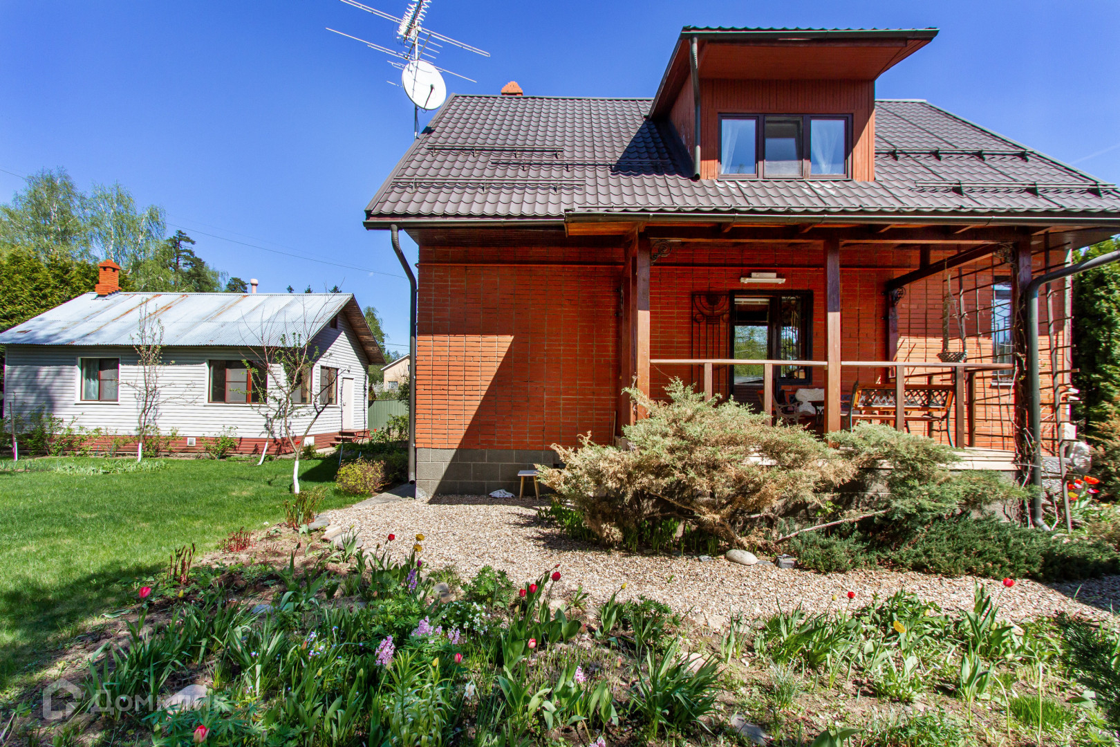 Земельный участок: Просторный, прямоугольный, площадью 825 кв.м . Расположен на широкой улице, в 500 метрах от большой лесополосы. Участок ровный, на участке растут березы, сосна, ель, засеян газон, посажены молодые плодовые деревья цветы и кустарники. Обустроена зона барбекю с мойкой, мангалом и тандыром, расположена рядом с террасой выход на которую есть из дома. На участке построен каменный кирпичный трехуровневый дом размером 10х12 м, гараж 8х4м., дом из бруса 150х150 мм утеплен финской каменной ватой Parek и облицован канадской вагонкой. Размер деревянного дома 9х6 м в котором располагается баня с русской каменной печью и каменкой, с двумя комнатами, санузлом, помывочной зоной и просторной парилкой. В домах холодное и горячее водоснабжение, отопление и канализация. На территории двора два парковочных места.