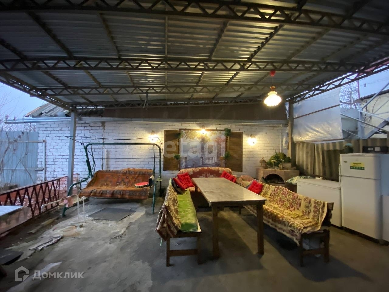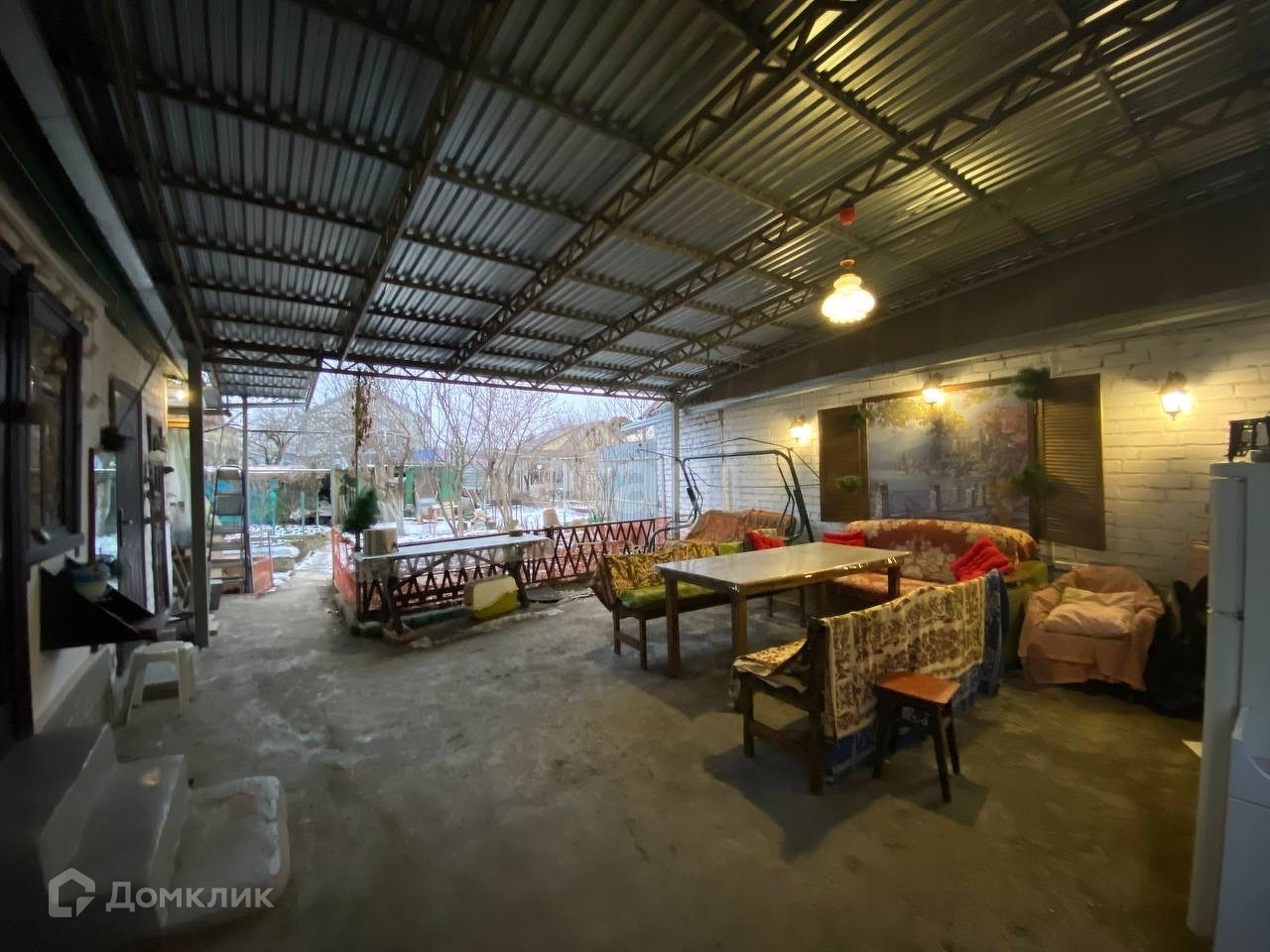 Двор крытый, под навесом из металлопрофиля, заезд для машины во двор.