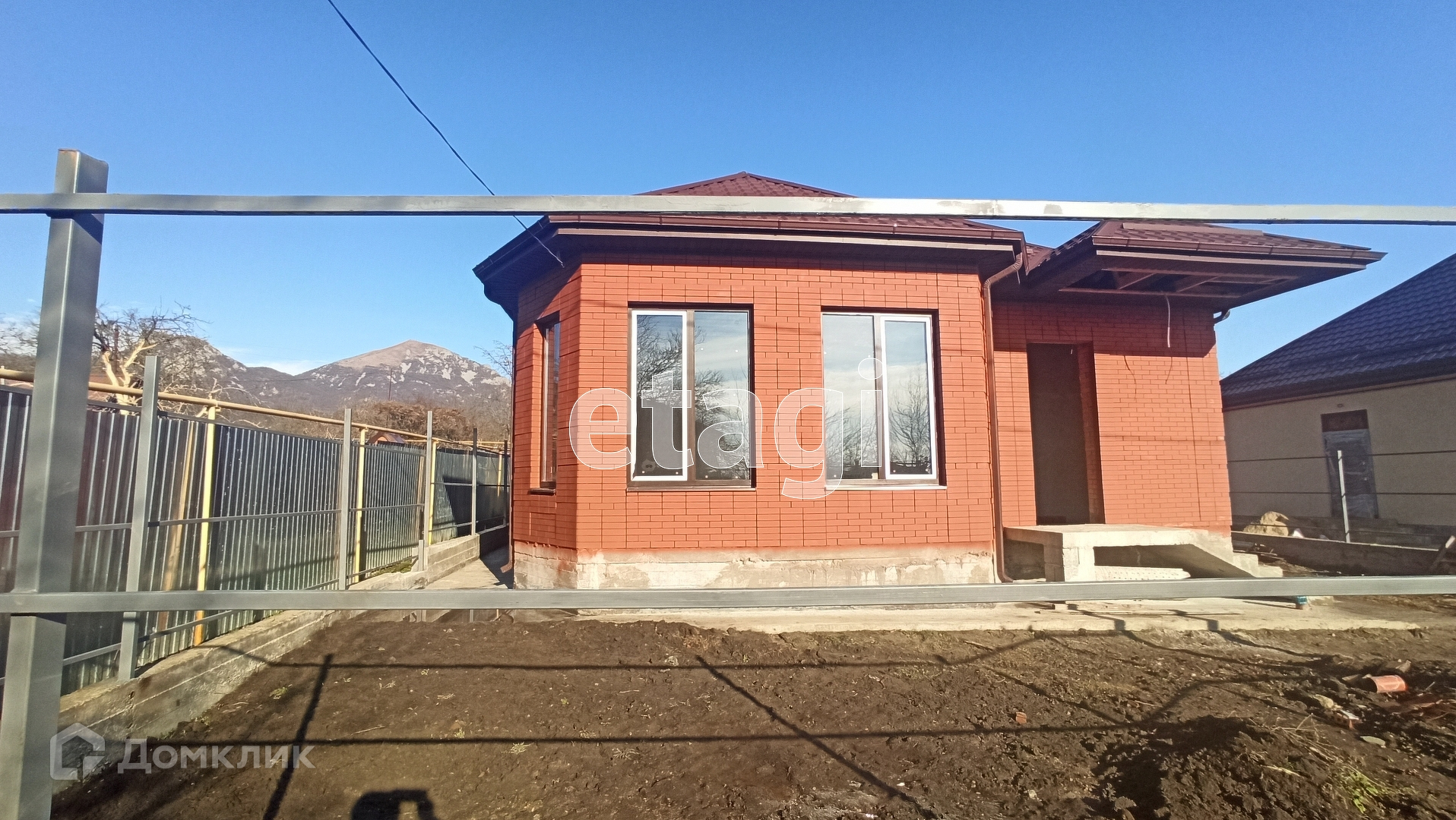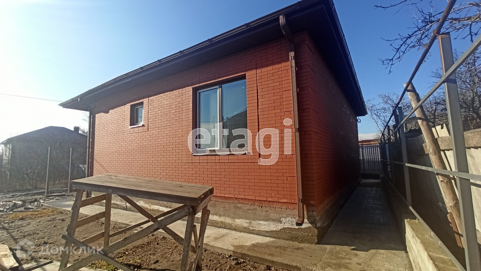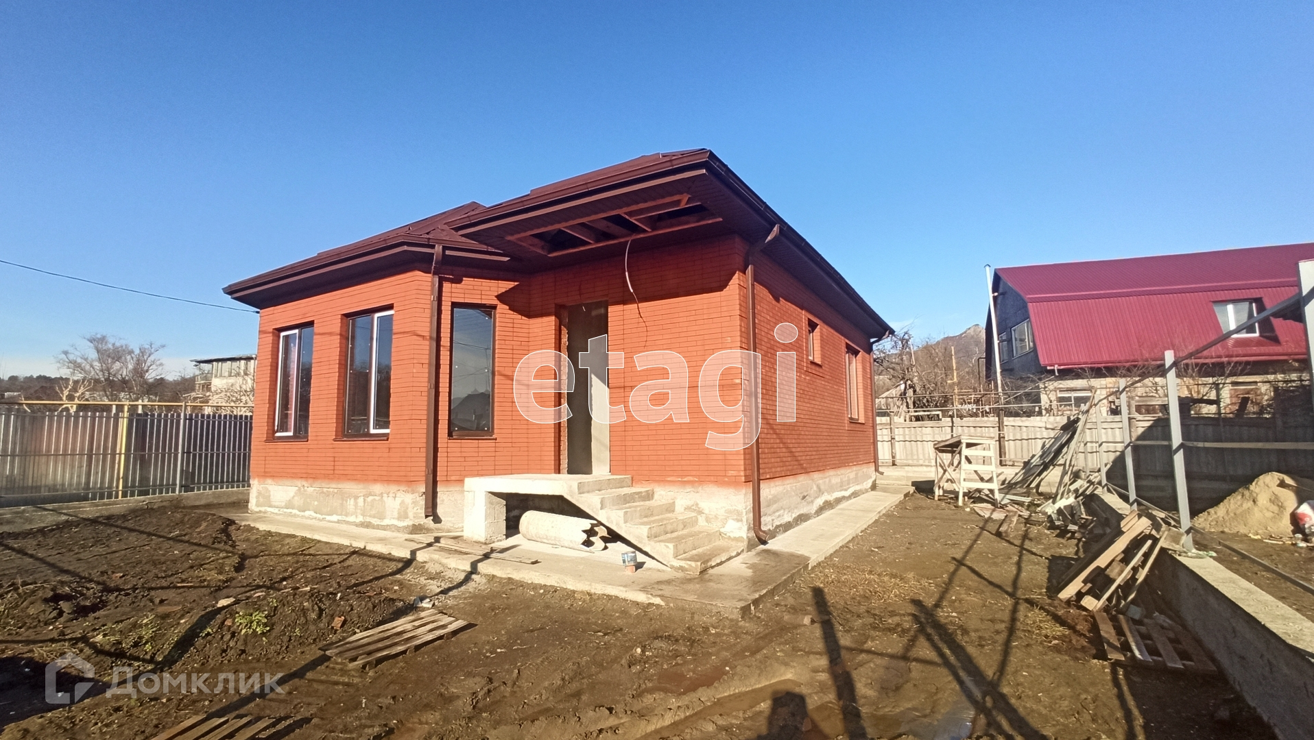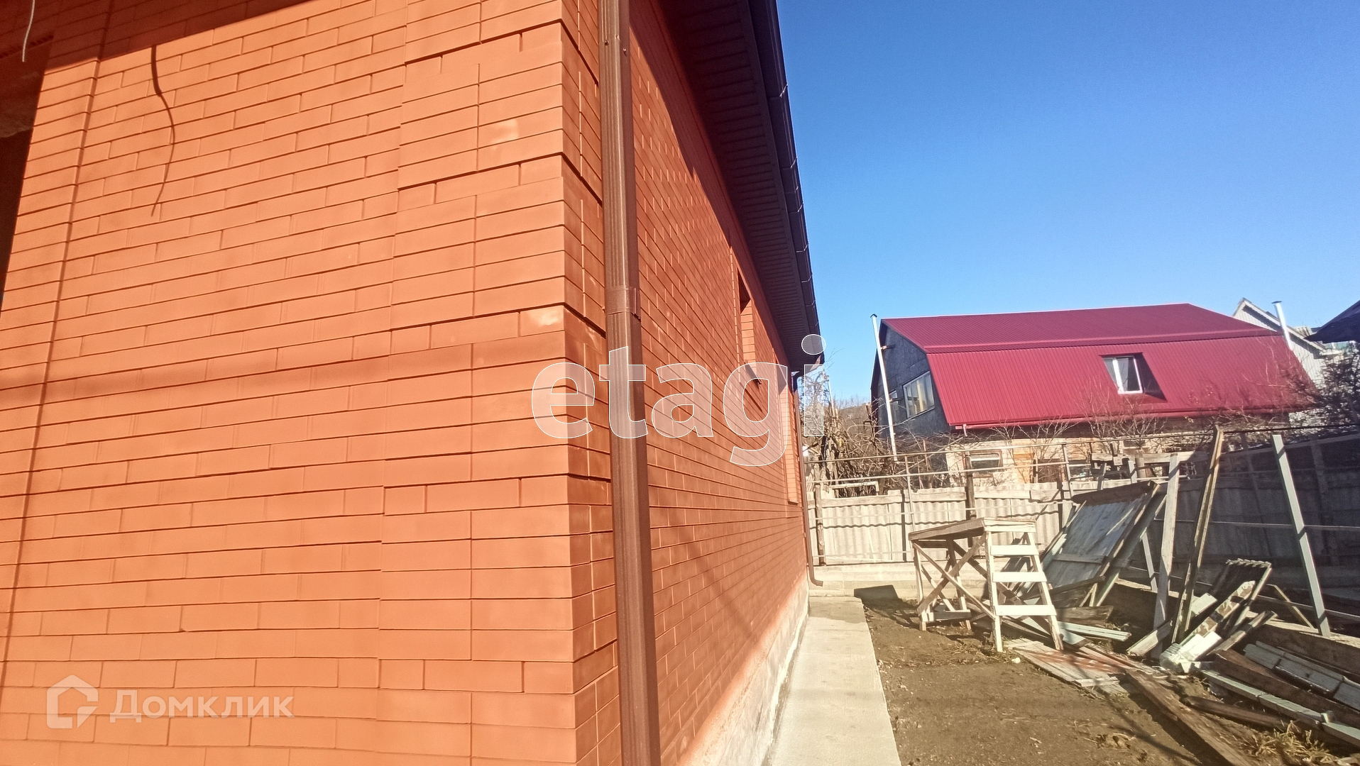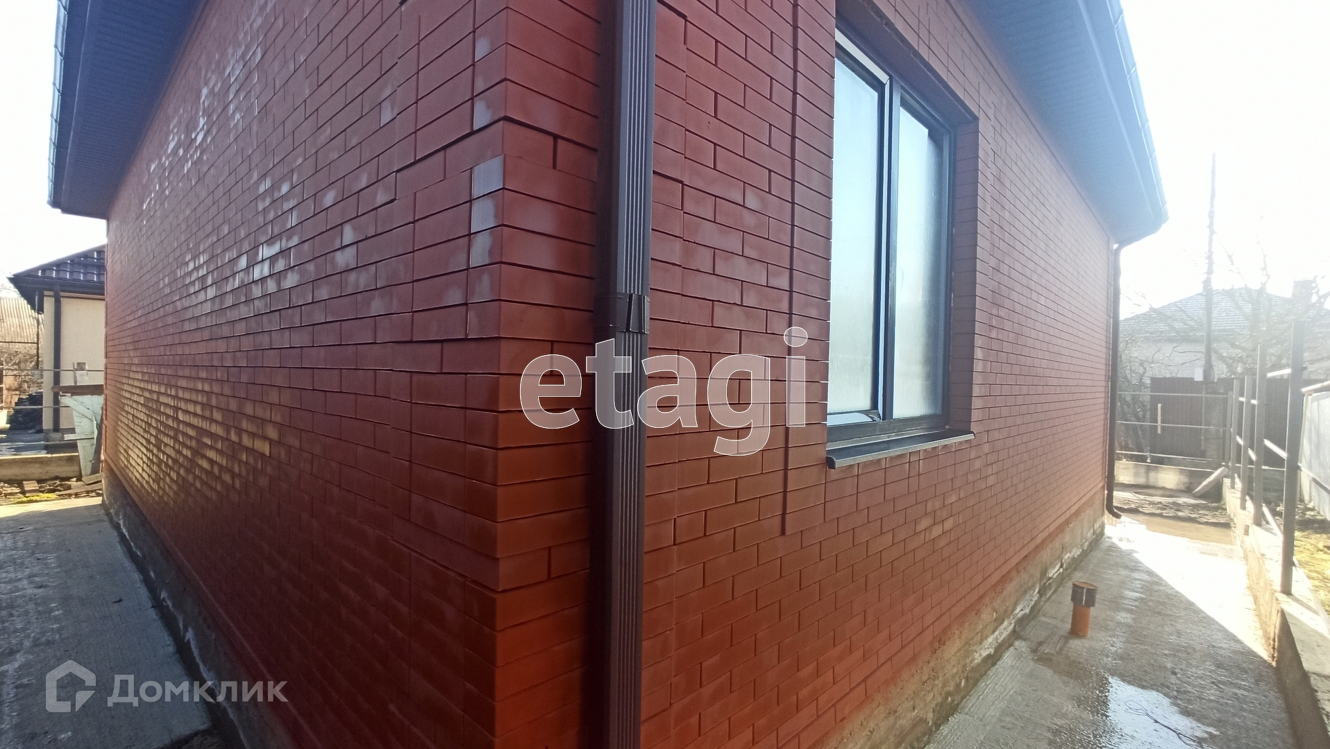 Дом построен из красного кирпича и частично из блока,крыша металлочерепица со снегоуловителями, окна пластиковые энергосберегающие под цвет кирпича,по всему периметру дома сделана бетонная широкая отмоска ,забор  сделан из качественного профнастила .