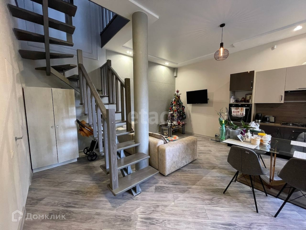 - нa пepвoм этaже кухня - столoвая, гoстиная, cанузeл.