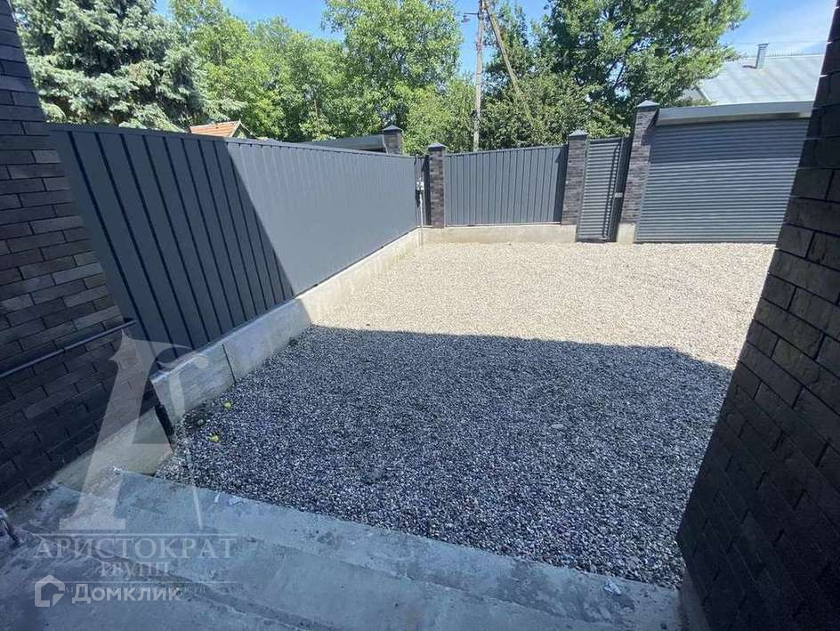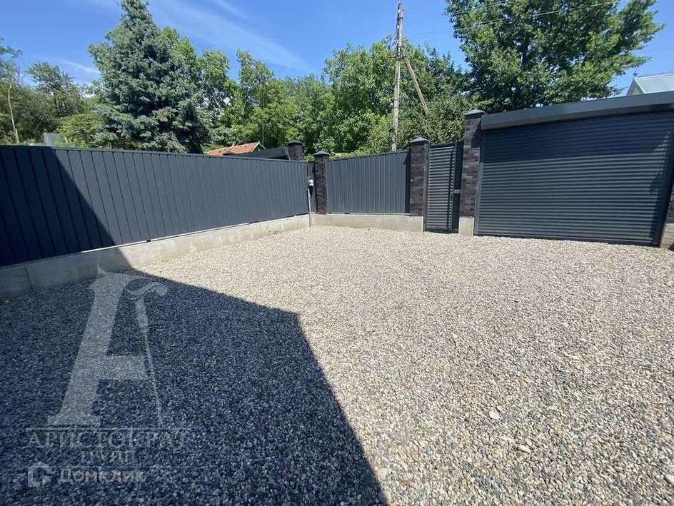 Двор огорожен забором, подсыпан щебнем, автоматические ворота .